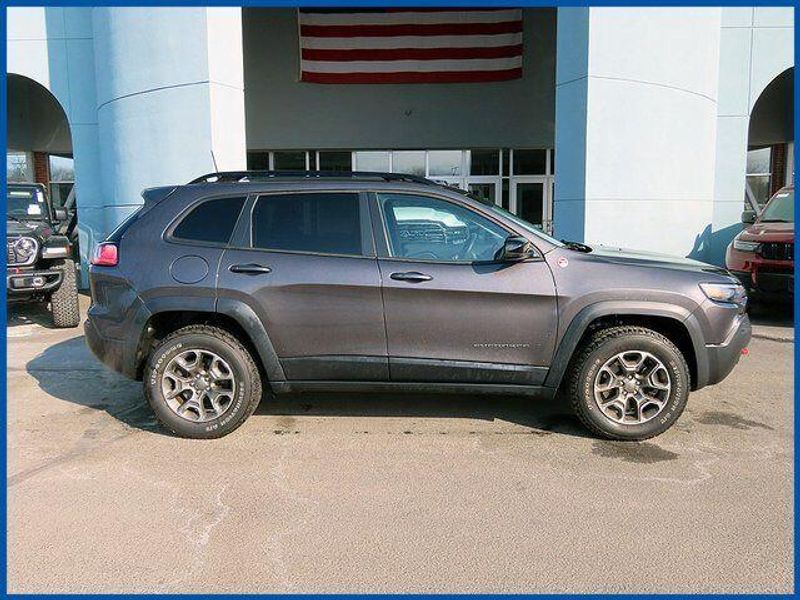 CARFAX One-Owner. Clean CARFAX. Certified. Granite Crystal Metallic Clearcoat 2022 Jeep Cherokee Trailhawk 4WD 9-Speed 948TE Automatic 3.2L V6 3.2L V6, 4WD, Granite Crystal Metallic Clearcoat, Black Cloth, 6 Speakers, 7 & 4 Pin Wiring Harness, AM/FM radio: SiriusXM, Auto-Dimming Rear-View Mirror, Class III Receiver Hitch, Comfort/Convenience Group, Front Bucket Seats, Front Center Armrest, GPS Antenna Input, Hands-Free Power Liftgate, Heated front seats, Quick Order Package 27E, Radio data system, Radio: Uconnect 4 w/8.4'' Display, Security Alarm, Trailer Tow Group, Trailer Tow Wiring Harness, Universal Garage Door Opener.