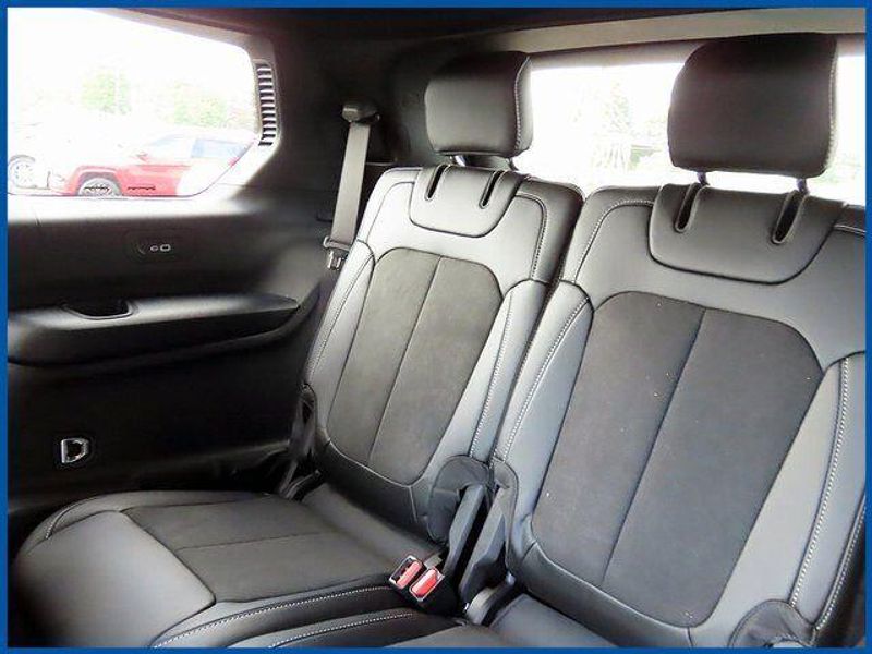 Grand Cherokee L Altitude X Altitude X 4x4, 3.6L V6 24V VVT, Diamond Black Crystal Pearlcoat, 115V Auxiliary Power Outlet, 3rd Row Charge-Only USB Ports, 3rd row seats: split-bench, 6 Speakers, Air Conditioning, Altitude X, AM/FM radio: SiriusXM, Automatic temperature control, Black Headliner, Capri Leatherette/Suede Seats, Delete Laredo Badge, Four wheel independent suspension, Front dual zone A/C, Gloss Black Exterior Accents, Heated Front Seats, Heated Steering Wheel, Power driver seat, Power Liftgate, Power steering, Power Sunroof, Power windows, Quick Order Package 23M Altitude X, Radio data system, Radio: Uconnect 5 w/8.4'' Display, Rain Sensitive Windshield Wipers, Rear air conditioning, Rear window defroster, Remote keyless entry, Remote Start System, Selectable Tire Fill Alert, Steering wheel mounted audio controls, Wheels: 18'' x 8.0'' Fully Painted Aluminum 1, Wireless Charging Pad.