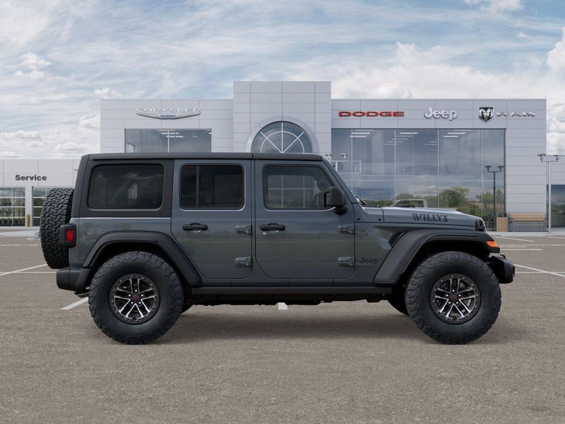 Wrangler Willys Willys 4 Door 4x4, 3.6L V6 24V VVT, Anvil Clear Coat, 2-Door Passive Entry, Front Door Locks, 35'' Tire Suspension, 4-Wheel Drive Swing Gate Decal, 4.56 Rear Axle Ratio, 7 & 4 Pin Wiring Harness, 8 Speakers, 97 MPH Vehicle Max Speed Calibration, Advanced Brake Assist, Air Conditioning w/Auto Temperature Control, Air Filtering, AM/FM radio: SiriusXM, Anti-Lock 4-Wheel Disc Perf Brakes, Automatic Headlamps, Auxiliary Switches, Black Grille, Class II Receiver Hitch, Cluster 7.0'' TFT Color Display, Convenience Group, Conventional Differential Front Axle, Corning Gorilla Glass, Dana M210 Wide HD Tube Front Axle, Dana M220 Wide Rear Axle, Daytime Running Lamps LED Accents, Deep Tint Sunscreen Windows, E-Locker Rear Axle, Emergency/Assistance Call, Enhanced Adaptive Cruise Control, Front LED Fog Lamps, Full Speed Forward Collision Warning Plus, Heated Front Seats, Heated Steering Wheel, Injection Molded Black Rear Bumper, LED Premium Reflector Headlamps, Mold In Color Bumper w/Gloss Black, Molded in Color Rubicon Highline Flare, MOPAR All-Weather Floor Mats, MOPAR Hinge-Gate Reinforcement, Off-Road Plus Mode, Power Heated Mirrors, Premium Wrapped Steering Wheel, Quick Order Package 24W Willys, Radio data system, Radio: Uconnect 5 w/12.3'' Display, Remote Start System, Security Alarm, Sun Visors w/Illuminated Vanity Mirrors, Universal Garage Door Opener, Wheel Flare Extensions, Wheels: 17'' x 7.5'' Painted Black, Wheels: 17'' x 8'' Machined w/Black Pockets, Willy's Suspension, Willys Hood Decal, Xtreme 35'' Tire Package.