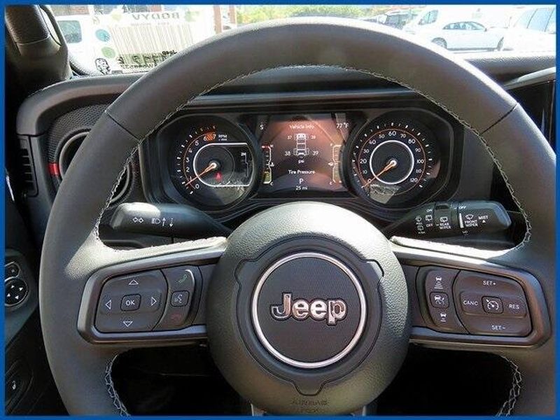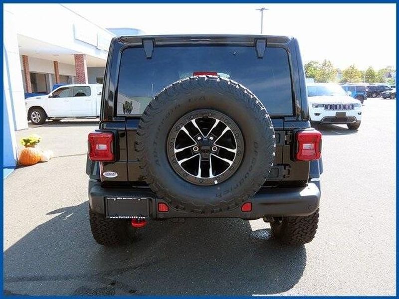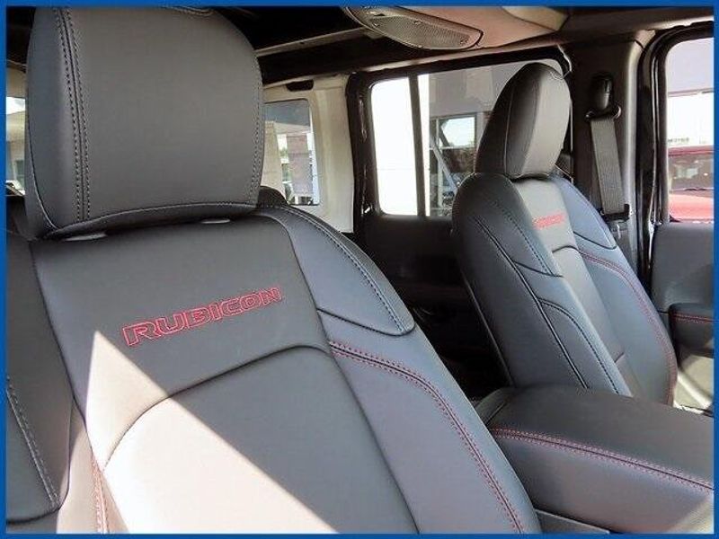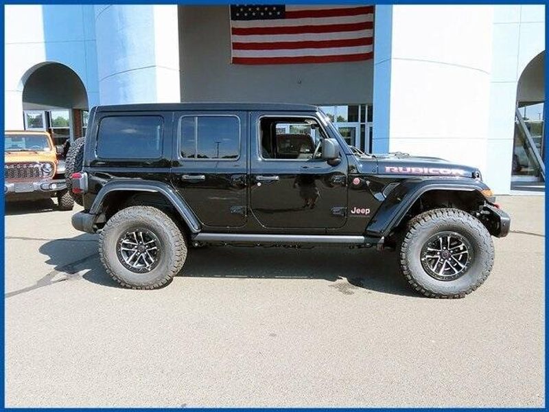3.6L V6 24V VVT, 8-Speed Automatic, Black Clearcoat, Black Leather, 12.3'' Touchscreen Display, 35'' Tire Suspension, 4.56 Rear Axle Ratio, 4G LTE Wi-Fi Hot Spot, 97 MPH Vehicle Max Speed Calibration, Acoustic Front Seat Area Carpet, Acoustic Laminated Front Door Glass, Alpine Premium Audio System, Anti-Lock 4-Wheel Disc Perf Brakes, Apple CarPlay, Auto High Beam Headlamp Control, Auto-Dimming Rear-View Mirror, Blind Spot & Cross Path Detection, Body Color 3-Piece Hard Top, Body Color Rubicon Highline Flare, Connected Travel & Traffic Services, Connectivity - US/Canada, Convenience Group, Freedom Panel Storage Bag, Google Android Auto, GPS Navigation, HD Radio, Heated Front Seats, Heated Steering Wheel, Integrated Off-Road Camera, Integrated Voice Command w/Bluetooth, Leather Wrapped Park Brake Handle, Leather Wrapped Shift Knob, MOPAR Hardtop Headliner, MOPAR Hinge-Gate Reinforcement, Nappa Leather Seats, ParkSense Rear Park Assist System, Power 4-Way Driver Lumbar Adjust, Power 4-Way Passenger Lumbar Adjust, Power Adjust 8-Way Driver Seat, Power Adjust 8-Way Front Passenger Seat, Premium Door Trim Panel, Quick Order Package 24Y Rubicon X, Radio: Uconnect 5 Nav w/12.3'' Display, Rear Window Defroster, Rear Window Wiper/Washer, Safety Group, SiriusXM Radio Service, SiriusXM w/360L, Steel Front Bumper, Steel Rear Bumper, Technology Group, Trailer Tow Prep Package, Universal Garage Door Opener, Wheels: 17'' x 8'' Machined w/Black Pockets, Xtreme 35'' Tire Package.