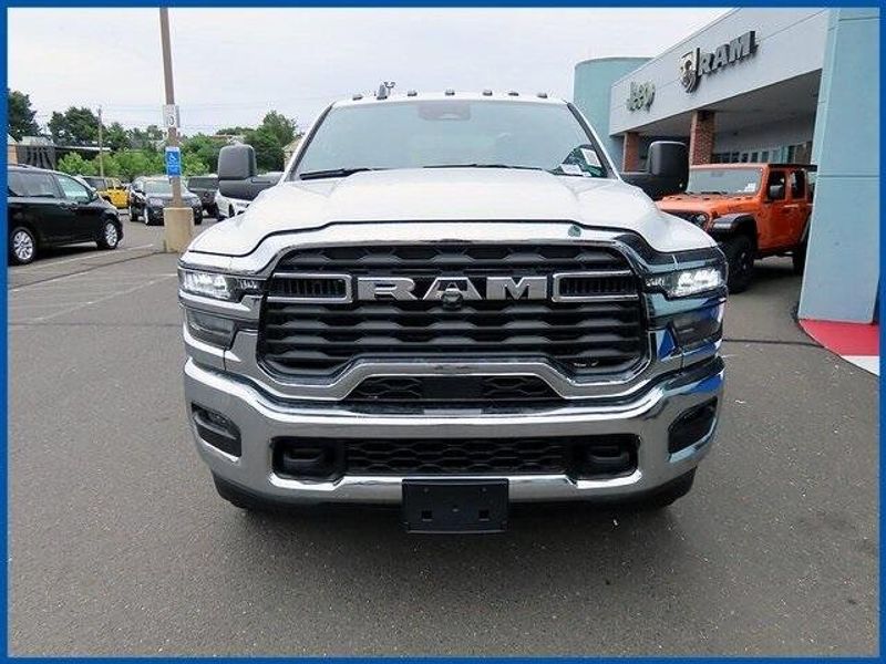 Cummins 6.7L I6 Turbodiesel, Bright White Clearcoat, 6 Speakers, Air Conditioning, AM/FM radio: SiriusXM, Bed Utility Group (DISC), Bright Front Bumper, Bright Rear Bumper, Center Hub, Chrome Appearance Group, Chrome Grille Surround, GPS Antenna Input, LED Bed Lighting, Matte Black Mesh Grille w/Chrome, MOPAR Deployable Bed Step, MOPAR Spray In Bedliner, Quick Order Package 24A Tradesman, Radio data system, Radio: Uconnect 5 w/8.4'' Display, Rear window defroster, Wheels: 18'' x 8.0'' Steel Chrome Clad.