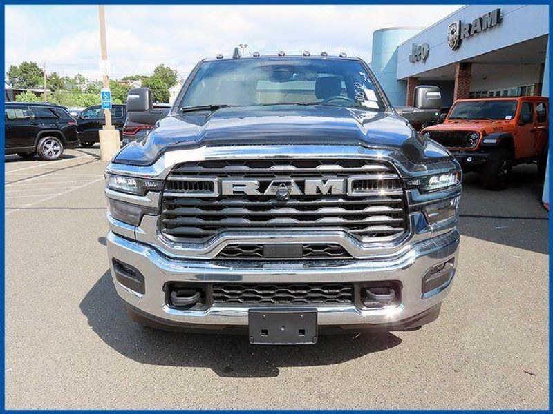 3500 Tradesman Tradesman 4WD Reg Cab 60'' CA 143.5'' WB, 4WD, Diamond Black Crystal Pearlcoat, Diesel Gray/Black Vinyl, 115V Auxiliary Power Outlet, 12.0'' Touchscreen Display, 400W Inverter, 4G LTE Wi-Fi Hot Spot, Air Conditioning ATC w/Dual Zone Control, Alexa Built-In, Apple CarPlay, Black Exterior Mirrors, Black Power Heated Fold Telescope Mirrors, Black Wheel Flares, Bright Front Bumper, Center Hub, Chrome Appearance Group, Chrome Grille Surround, Cold Weather Group, Connected Travel & Traffic Services, Connectivity - US/Canada, Digital Rearview Mirror, Disassociated Touchscreen Display, Engine Block Heater, Exterior Mirrors Courtesy Lamps, Exterior Mirrors w/Heating Element, Exterior Mirrors w/Supplemental Signals, For Details, Visit DriveUconnect.com, For More Info, Call 800-643-2112, Front 1-Touch Down Power Windows, Global Telematics Box Module (TBM), Google Android Auto, GPS Antenna Input, GPS Navigation, HD Radio, Integrated Voice Command w/Bluetooth, Manual Folding Exterior Mirrors, Manual Telescoping Mirrors, Matte Black Mesh Grille w/Chrome, Mirror Running Lights, MOPAR Winter Front Grille Cover, Off-Road Information Pages, Power Adjust Mirrors, Power-Adjustable Convex Aux Mirrors, Quick Order Package 25A Tradesman, Radio: Uconnect 5 Nav w/12.0'' Display, Remote Keyless Entry, Remote Start System, SiriusXM Radio Service, SiriusXM w/360L, Speed Sensitive Power Locks, Temperature & Compass Gauge, Tinted Acoustic Windshield Glass, Tradesman Level 2 Equipment Group, Trailer Brake Control, Trailer Light Check, Trailer Tow Pages, Upgraded Door Trim Panel, Wheels: 18'' x 8.0'' Polished Aluminum.
