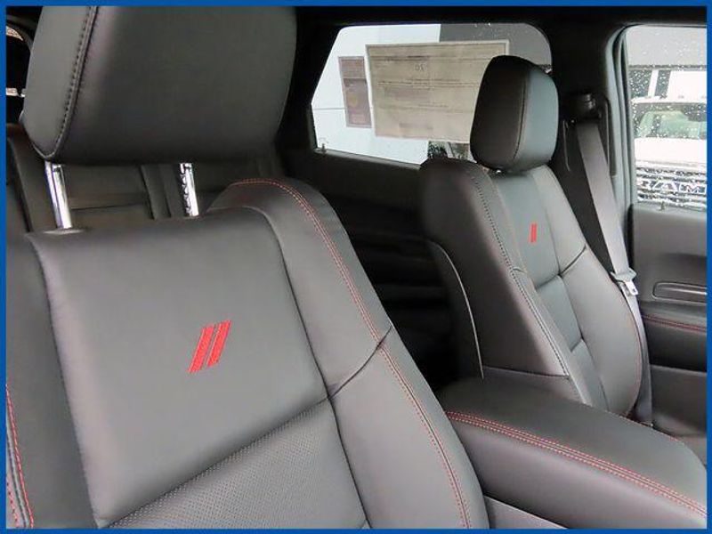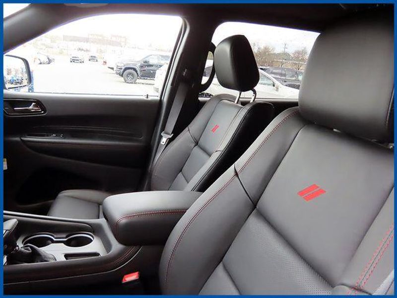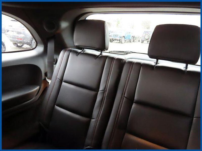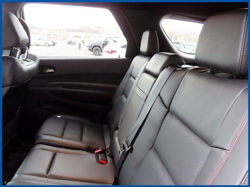 Durango GT Plus GT Plus AWD, 3.6L V6 24V VVT, AWD, DB Black Crystal Clearcoat, Black Leather, 115V Auxiliary Power Outlet, 180 Amp Alternator, 506 Watt Amplifier, 7 and 4 Pin Wiring Harness, 9 Alpine Amplified Speakers with Subwoofer, Adaptive Cruise Control with Stop, Advanced Brake Assist, Auto High Beam Headlamp Control, Auto-Dimming Exterior Driver Mirror, Black Roof Rails, Blacktop Package, Blind Spot with Trailer Detection, Bright Cargo Area Scuff Pads, Class IV Receiver Hitch, Dual Remote USB Port - Charge Only, Exterior Mirrors with Heating Element, Exterior Mirrors with Memory, Exterior Mirrors with Supplemental Signals, Full Speed Forward Collision Warning Plus, Gloss Black Badges, Gloss Black Exterior Mirrors, GT Gloss Black Badging, Heated Second Row Seats, Heavy-Duty Engine Cooling, Integrated Roof Rail Crossbars, Lane Departure Warning Plus, Leather Trimmed Bucket Seats, Leather Wrapped Door Panels, LED Auxiliary Low Beam and Turn Signal, Navigation System, ParkSense Front/Rear Park Assist with Stop, Power 6x9 Multi-Function Foldaway Mirrors, Power 8-Way Driver Memory 8-Way Passenger Seats, Power Driver/Passenger 4-Way Lumbar Adjust, Power Sunroof, Power Tilt and Telescopic Steering Column, Quick Order Package 2BH GT Plus, Rear Load Leveling Suspension, Red Accent Stitching, Satin Black Dodge Tail Lamp Badge, Security Alarm, Sun Visors with Illuminated Vanity Mirrors, Trailer Brake Control, Ventilated Front Seats, Wheels: 20'' x 8'' Black Noise Aluminum, Wireless Charging Pad.