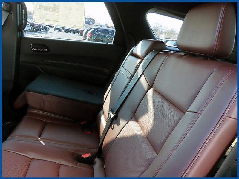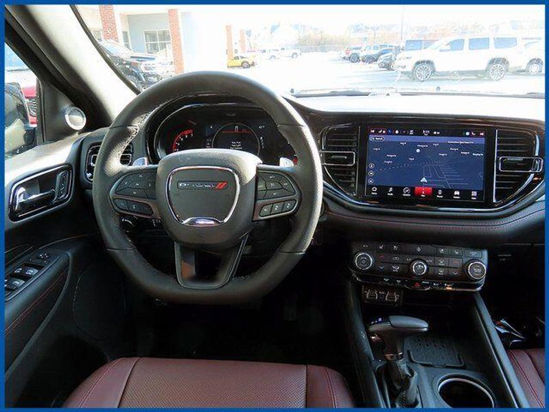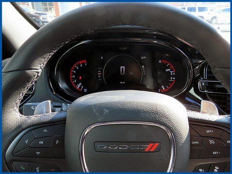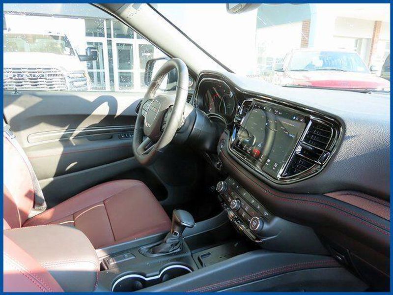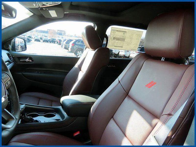 Durango GT Plus HEMI V8 GT Plus HEMI V8 AWD, HEMI 5.7L V8 Multi Displacement VVT, 8-Speed Automatic, AWD, DB Black Crystal Clearcoat, Red/Black/Ebony Leather, 115V Auxiliary Power Outlet, 7 and 4 Pin Wiring Harness, 9 Speakers, Adaptive Cruise Control with Stop, Auto High Beam Headlamp Control, Auto-Dimming Exterior Driver Mirror, Black Roof Rails, Blacktop Package, Blind Spot with Trailer Detection, Cargo Net, Class IV Receiver Hitch, Dual Remote USB Port - Charge Only, Exterior Mirrors with Heating Element, Exterior Mirrors with Memory, Exterior Mirrors with Supplemental Signals, Floor Console with Leather Armrest, Full Speed Forward Collision Warning Plus, Gloss Black Badges, Gloss Black Exterior Mirrors, Heated Second Row Seats, Integrated Roof Rail Crossbars, Leather Trimmed Bucket Seats, Leather Wrapped Door Panels, LED Auxiliary Low Beam and Turn Signal, MOPAR All Weather Package, MOPAR Front and Rear Door Entry Guards, MOPAR Slush Mats, Navigation System, Power 6x9 Multi-Function Foldaway Mirrors, Power 8-Way Driver Memory 8-Way Passenger Seats, Power Driver/Passenger 4-Way Lumbar Adjust, Power Sunroof, Power Tilt and Telescopic Steering Column, Quick Order Package 22T GT Plus, Radio/Driver Seat/Mirrors Memory, Red Accent Stitching, Satin Black Dodge Tail Lamp Badge, Trailer Brake Control, Ventilated Front Seats.
