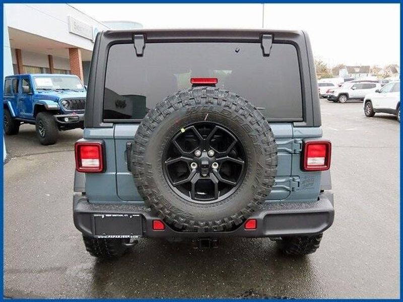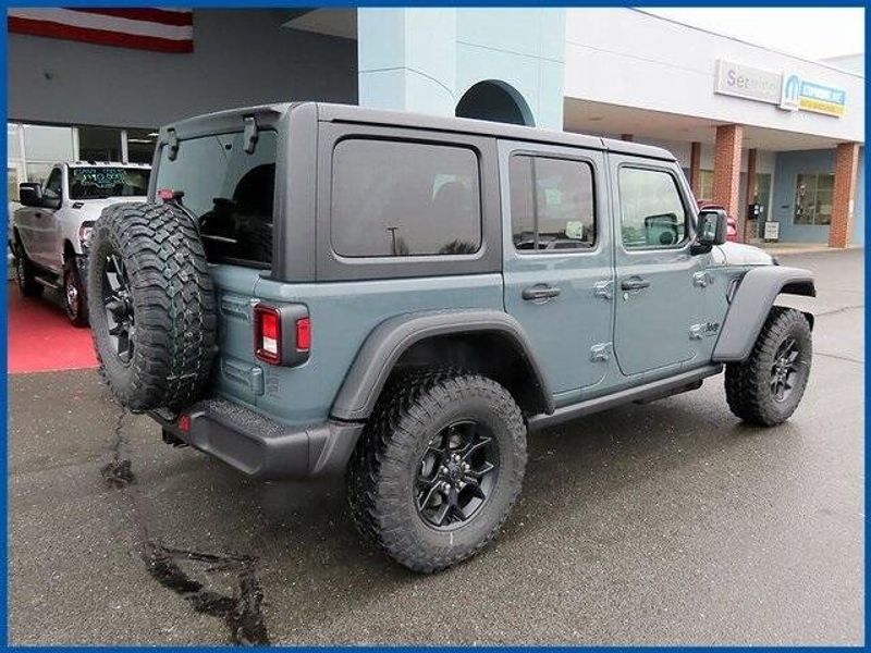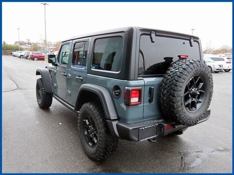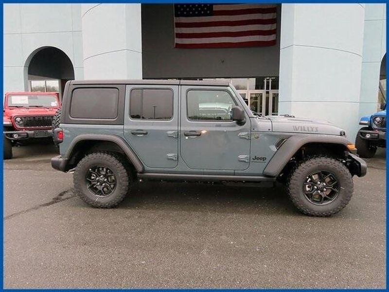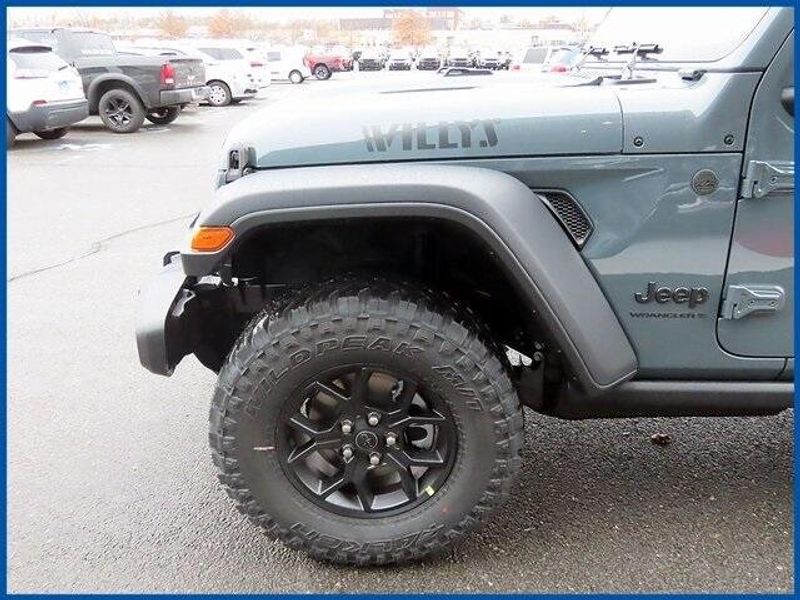 Wrangler Willys Willys 4 Door 4x4, 3.6L V6 24V VVT, Anvil Clear Coat, Black Cloth, 2-Door Passive Entry, Front Door Locks, 4-Wheel Drive Swing Gate Decal, 4.10 Rear Axle Ratio, 7 and 4 Pin Wiring Harness, 8 Speakers, Advanced Brake Assist, Air Conditioning with Auto Temp Control, Air Filtering, AM/FM radio: SiriusXM with 360L, Automatic Headlamps, Auxiliary Switches, Black Grille, Class II Receiver Hitch, Cluster 7.0'' TFT Color Display, Convenience Group, Conventional Differential Front Axle, Corning Gorilla Glass, Dana M210 Wide HD Tube Front Axle, Dana M220 Wide Rear Axle, Daytime Running Lamps LED Accents, Deep Tint Sunscreen Windows, E-Locker Rear Axle, Emergency/Assistance Call, Enhanced Adaptive Cruise Control, Front LED Fog Lamps, Full Speed Forward Collision Warning Plus, Heated Front Seats, Heated Steering Wheel, Injection Molded Black Rear Bumper, LED Premium Reflector Headlamps, Mold in Color Bumper with Gloss Black, Molded in Color Rubicon Highline Flare, MOPAR All-Weather Floor Mats, Off-Road Plus Mode, Power Heated Mirrors, Premium Wrapped Steering Wheel, Quick Order Package 24W Willys, Radio data system, Radio: Uconnect 5 with 12.3'' Display, Security Alarm, SiriusXM with 360L, Sun Visors with Illuminated Vanity Mirrors, Universal Garage Door Opener, Wheels: 17'' x 7.5'' Painted Black, Willy's Suspension, Willys Hood Decal.