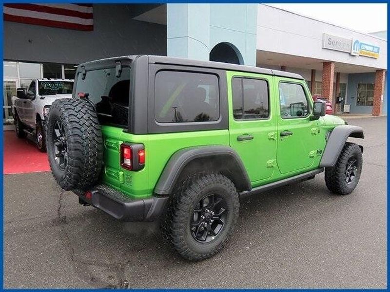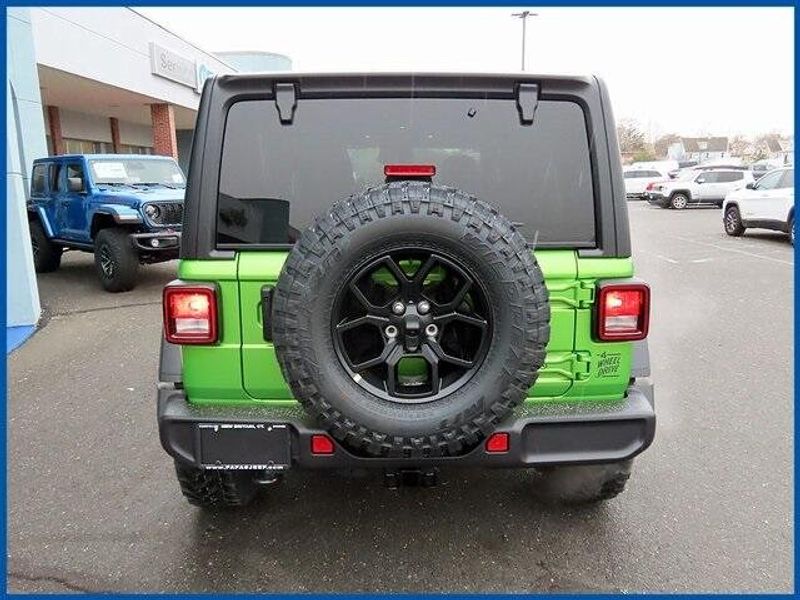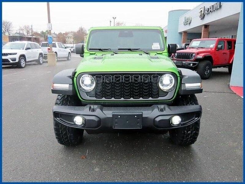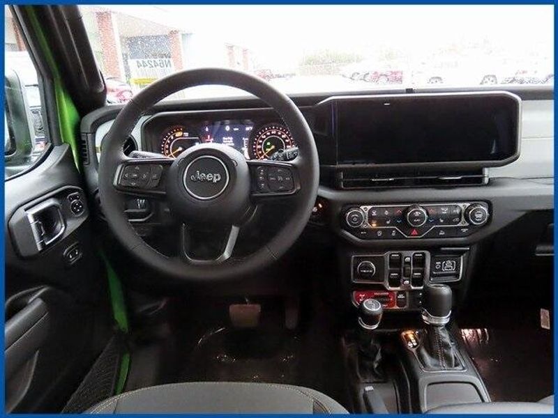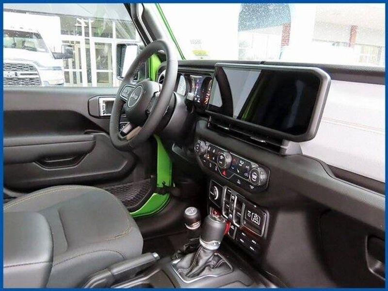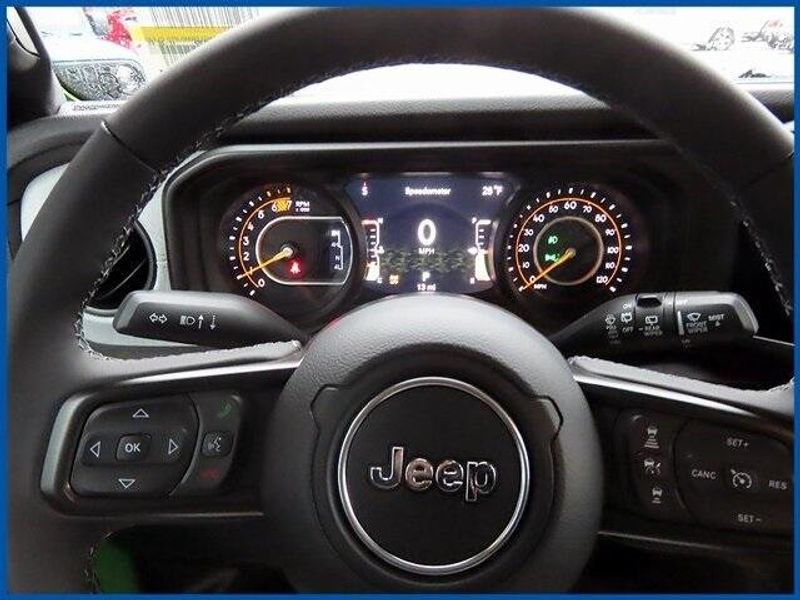3.6L V6 24V VVT, Mojito Clearcoat, Black Cloth, 2-Door Passive Entry, Front Door Locks, 4-Wheel Drive Swing Gate Decal, 4.10 Rear Axle Ratio, 7 and 4 Pin Wiring Harness, 8 Speakers, Advanced Brake Assist, Air Conditioning with Auto Temp Control, Air Filtering, AM/FM radio: SiriusXM with 360L, Automatic Headlamps, Auxiliary Switches, Black Grille, Class II Receiver Hitch, Cluster 7.0'' TFT Color Display, Convenience Group, Conventional Differential Front Axle, Corning Gorilla Glass, Dana M210 Wide HD Tube Front Axle, Dana M220 Wide Rear Axle, Daytime Running Lamps LED Accents, Deep Tint Sunscreen Windows, E-Locker Rear Axle, Emergency/Assistance Call, Enhanced Adaptive Cruise Control, Front LED Fog Lamps, Full Speed Forward Collision Warning Plus, Heated Front Seats, Heated Steering Wheel, Injection Molded Black Rear Bumper, LED Premium Reflector Headlamps, Mold in Color Bumper with Gloss Black, Molded in Color Rubicon Highline Flare, MOPAR All-Weather Floor Mats, Off-Road Plus Mode, Power Heated Mirrors, Premium Wrapped Steering Wheel, Quick Order Package 24W Willys, Radio data system, Radio: Uconnect 5 with 12.3'' Display, Security Alarm, SiriusXM with 360L, Sun Visors with Illuminated Vanity Mirrors, Universal Garage Door Opener, Wheels: 17'' x 7.5'' Painted Black, Willy's Suspension, Willys Hood Decal.