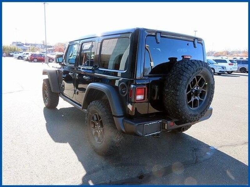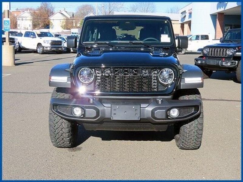3.6L V6 24V VVT, 4WD, Black Clearcoat, 2-Door Passive Entry, Front Door Locks, 4-Wheel Drive Swing Gate Decal, 4.10 Rear Axle Ratio, 7 and 4 Pin Wiring Harness, 8 Speakers, Advanced Brake Assist, Air Conditioning with Auto Temp Control, Air Filtering, AM/FM radio: SiriusXM with 360L, Automatic Headlamps, Auxiliary Switches, Black Grille, Class II Receiver Hitch, Cluster 7.0'' TFT Color Display, Convenience Group, Conventional Differential Front Axle, Corning Gorilla Glass, Dana M210 Wide HD Tube Front Axle, Dana M220 Wide Rear Axle, Daytime Running Lamps LED Accents, Deep Tint Sunscreen Windows, E-Locker Rear Axle, Emergency/Assistance Call, Enhanced Adaptive Cruise Control, Front LED Fog Lamps, Full Speed Forward Collision Warning Plus, Heated Front Seats, Heated Steering Wheel, Injection Molded Black Rear Bumper, LED Premium Reflector Headlamps, Mold in Color Bumper with Gloss Black, Molded in Color Rubicon Highline Flare, MOPAR All-Weather Floor Mats, Off-Road Plus Mode, Power Heated Mirrors, Premium Wrapped Steering Wheel, Quick Order Package 24W Willys, Radio data system, Radio: Uconnect 5 with 12.3'' Display, Security Alarm, SiriusXM with 360L, Sun Visors with Illuminated Vanity Mirrors, Universal Garage Door Opener, Wheels: 17'' x 7.5'' Painted Black, Willy's Suspension, Willys Hood Decal.