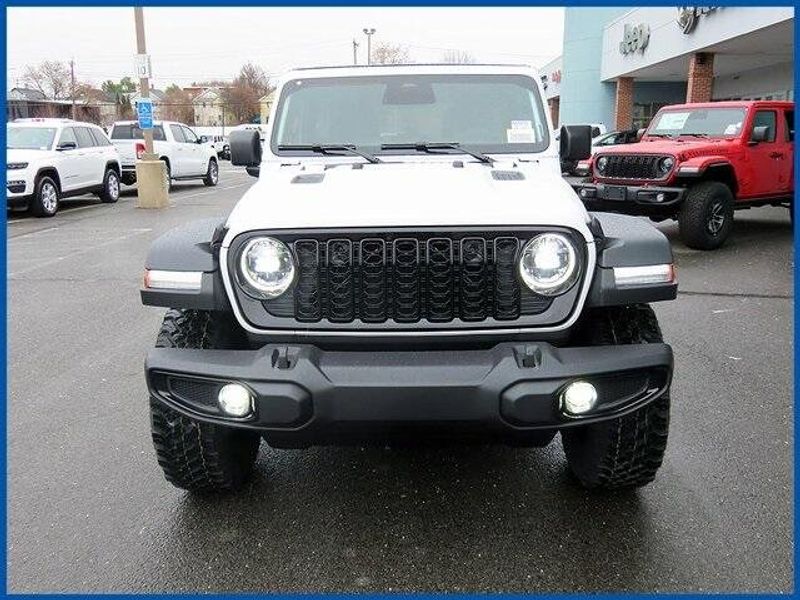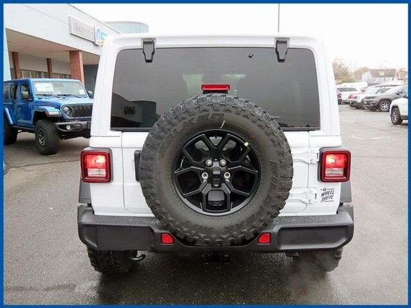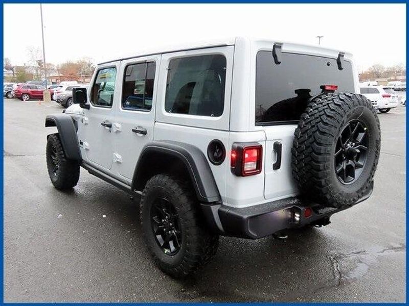 Wrangler Willys Willys 4 Door 4x4, Bright White Clearcoat, 2-Door Passive Entry, Front Door Locks, 4-Wheel Drive Swing Gate Decal, 4.10 Rear Axle Ratio, 7 and 4 Pin Wiring Harness, 8 Speakers, Advanced Brake Assist, Air Conditioning with Auto Temp Control, Air Filtering, AM/FM radio: SiriusXM with 360L, Automatic Headlamps, Auxiliary Switches, Black Grille, Class II Receiver Hitch, Cluster 7.0'' TFT Color Display, Convenience Group, Conventional Differential Front Axle, Corning Gorilla Glass, Dana M210 Wide HD Tube Front Axle, Dana M220 Wide Rear Axle, Daytime Running Lamps LED Accents, Deep Tint Sunscreen Windows, E-Locker Rear Axle, Emergency/Assistance Call, Enhanced Adaptive Cruise Control, Front LED Fog Lamps, Full Speed Forward Collision Warning Plus, Heated Front Seats, Heated Steering Wheel, Injection Molded Black Rear Bumper, LED Premium Reflector Headlamps, Mold in Color Bumper with Gloss Black, Molded in Color Rubicon Highline Flare, MOPAR All-Weather Floor Mats, Off-Road Plus Mode, Power Heated Mirrors, Premium Wrapped Steering Wheel, Quick Order Package 24W Willys, Radio data system, Radio: Uconnect 5 with 12.3'' Display, Security Alarm, SiriusXM with 360L, Sun Visors with Illuminated Vanity Mirrors, Universal Garage Door Opener, Wheels: 17'' x 7.5'' Painted Black, Willy's Suspension, Willys Hood Decal.