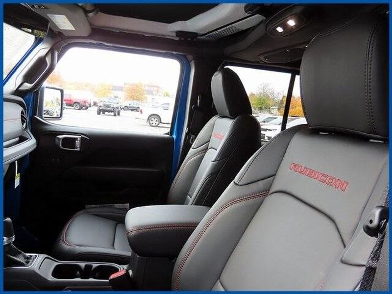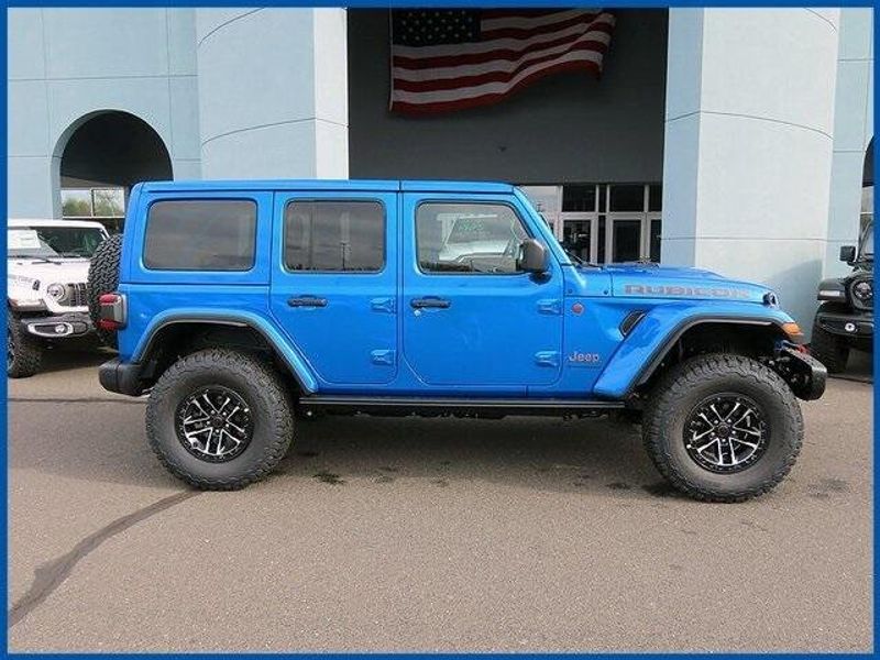 Wrangler Rubicon X Rubicon X 4 Door 4x4, 3.6L V6 24V VVT, Hydro Blue Pearl Coat, Black Leather, 12.3'' Touchscreen Display, 35'' Tire Suspension, 4.56 Rear Axle Ratio, 4G LTE Wi-Fi Hot Spot, Acoustic Front Seat Area Carpet, Acoustic Laminated Front Door Glass, Alpine Premium Audio System, Anti-Lock 4-Wheel Disc Perf Brakes, Apple CarPlay, Auto High Beam Headlamp Control, Auto-Dimming Rear-View Mirror, Blind Spot & Cross Path Detection, Body Color 3-Piece Hard Top, Body Color Rubicon Highline Flare, Connected Travel & Traffic Services, Connectivity - US/Canada, Freedom Panel Storage Bag, Google Android Auto, HD Radio, Heated Front Seats, Heated Steering Wheel, Integrated Off-Road Camera, Integrated Voice Command w/Bluetooth, Leather Wrapped Park Brake Handle, Leather Wrapped Shift Knob, MOPAR Hardtop Headliner, Nappa Leather Seats, ParkSense Rear Park Assist System, Power 4-Way Driver Lumbar Adjust, Power 4-Way Passenger Lumbar Adjust, Power Adjust 8-Way Driver Seat, Power Adjust 8-Way Front Passenger Seat, Premium Door Trim Panel, Quick Order Package 24Y Rubicon X, Radio: Uconnect 5 Nav w/12.3'' Display, Rear Window Defroster, Rear Window Wiper/Washer, SiriusXM w/360L, Steel Front Bumper, Steel Rear Bumper, Trailer Tow & Aux Switch Group, Trailer Tow Prep Package, Universal Garage Door Opener, Wheels: 17'' x 8'' Machined w/Black Pockets, Xtreme 35'' Tire Package.