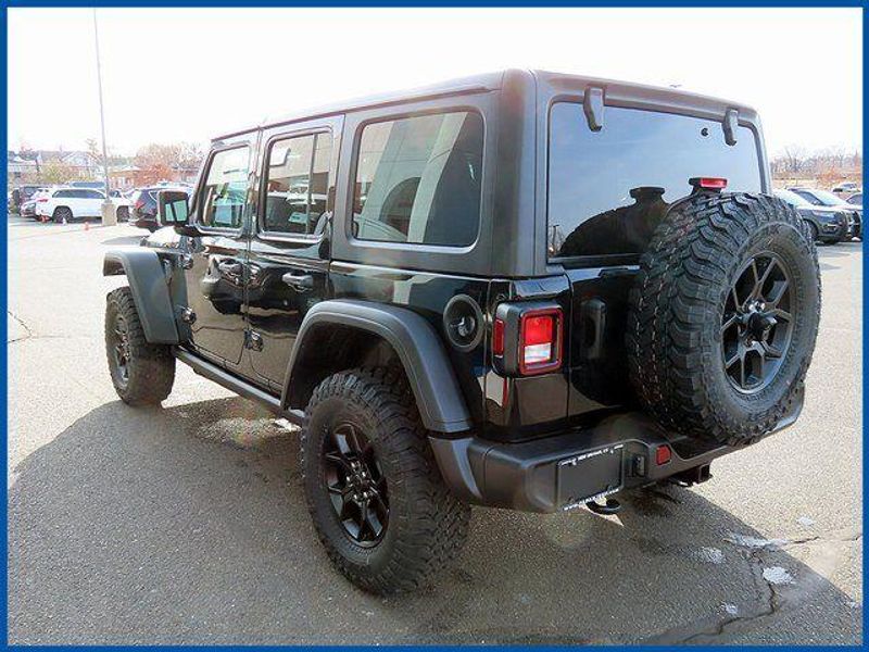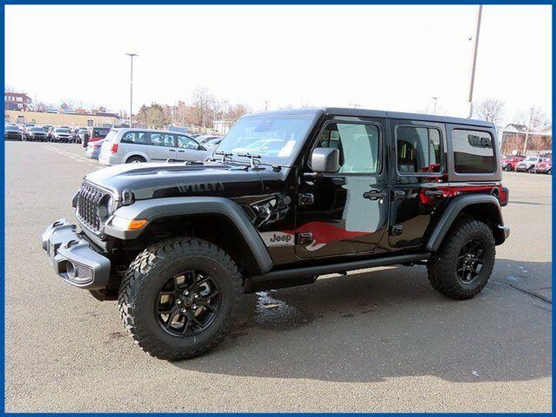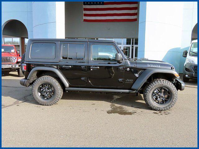 Wrangler Willys Willys 4 Door 4x4, 3.6L V6 24V VVT, 4WD, Black Cloth, 2-Door Passive Entry, Front Door Locks, 4-Wheel Drive Swing Gate Decal, 4.10 Rear Axle Ratio, 7 and 4 Pin Wiring Harness, 8 Speakers, Advanced Brake Assist, Air Conditioning with Auto Temp Control, Air Filtering, AM/FM radio: SiriusXM with 360L, Automatic Headlamps, Auxiliary Switches, Black Grille, Class II Receiver Hitch, Cluster 7.0'' TFT Color Display, Convenience Group, Conventional Differential Front Axle, Corning Gorilla Glass, Dana M210 Wide HD Tube Front Axle, Dana M220 Wide Rear Axle, Daytime Running Lamps LED Accents, Deep Tint Sunscreen Windows, E-Locker Rear Axle, Emergency/Assistance Call, Enhanced Adaptive Cruise Control, Front LED Fog Lamps, Full Speed Forward Collision Warning Plus, Heated Front Seats, Heated Steering Wheel, Injection Molded Black Rear Bumper, LED Premium Reflector Headlamps, Mold in Color Bumper with Gloss Black, Molded in Color Rubicon Highline Flare, MOPAR All-Weather Floor Mats, Off-Road Plus Mode, Power Heated Mirrors, Premium Wrapped Steering Wheel, Quick Order Package 24W Willys, Radio data system, Radio: Uconnect 5 with 12.3'' Display, Security Alarm, Sun Visors with Illuminated Vanity Mirrors, Universal Garage Door Opener, Wheels: 17'' x 7.5'' Painted Black, Willy's Suspension, Willys Hood Decal.