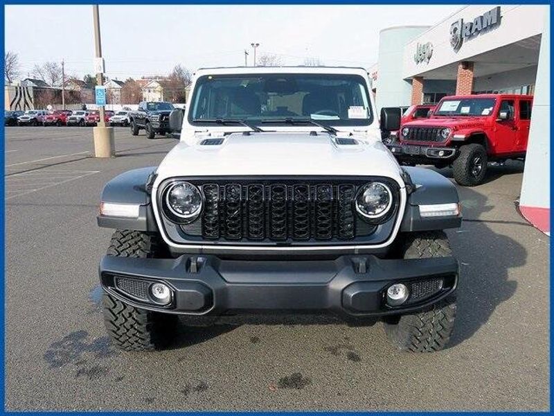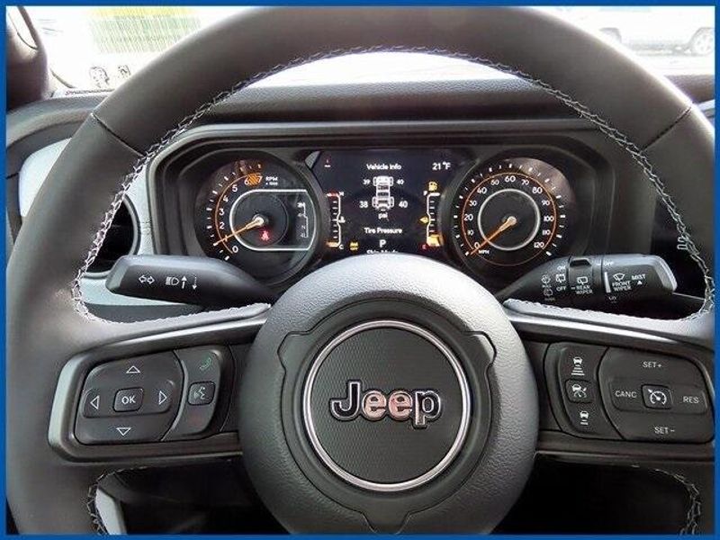 3.6L V6 24V VVT, 8-Speed Automatic, bright white clearcoat, Black Cloth, 2-Door Passive Entry, Front Door Locks, 4-Wheel Drive Swing Gate Decal, 4.10 Rear Axle Ratio, 7 and 4 Pin Wiring Harness, 8 Speakers, Advanced Brake Assist, Air Conditioning with Auto Temp Control, Air Filtering, Automatic Headlamps, Auxiliary Switches, Black Grille, Class II Receiver Hitch, Cluster 7.0'' TFT Color Display, Convenience Group, Conventional Differential Front Axle, Corning Gorilla Glass, Dana M210 Wide HD Tube Front Axle, Dana M220 Wide Rear Axle, Daytime Running Lamps LED Accents, Deep Tint Sunscreen Windows, E-Locker Rear Axle, Emergency/Assistance Call, Enhanced Adaptive Cruise Control, Front LED Fog Lamps, Full Speed Forward Collision Warning Plus, Heated Front Seats, Heated Steering Wheel, Injection Molded Black Rear Bumper, LED Premium Reflector Headlamps, Mold in Color Bumper with Gloss Black, Molded in Color Rubicon Highline Flare, MOPAR All-Weather Floor Mats, Off-Road Plus Mode, Power Heated Mirrors, Premium Wrapped Steering Wheel, Quick Order Package 24W Willys, Security Alarm, Sun Visors with Illuminated Vanity Mirrors, Trailer Tow and Auxiliary Switch Group, Universal Garage Door Opener, Wheels: 17'' x 7.5'' Painted Black, Willy's Suspension, Willys Hood Decal.
