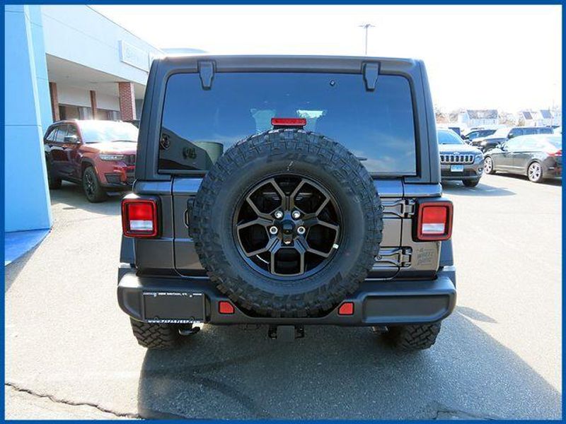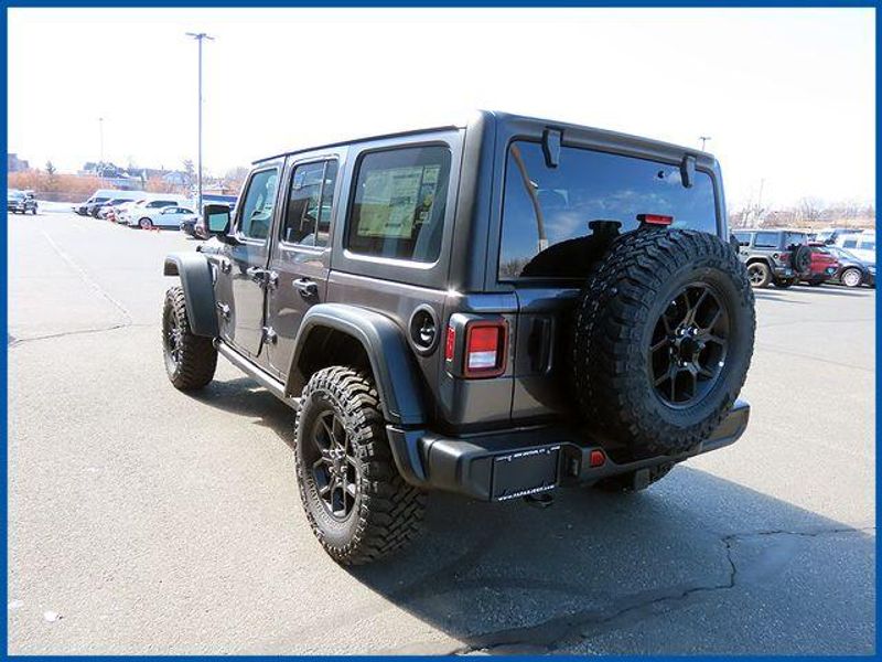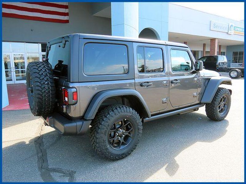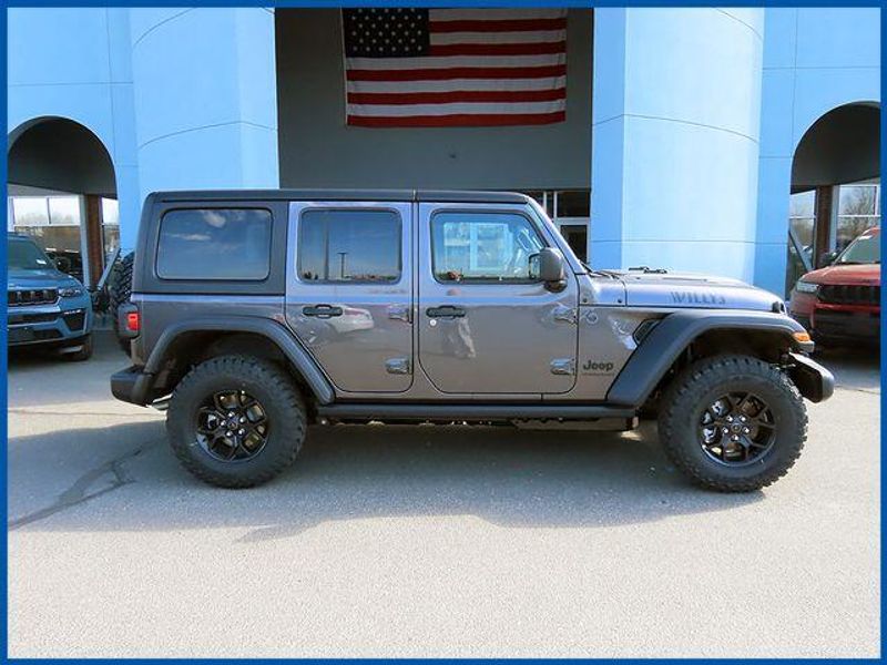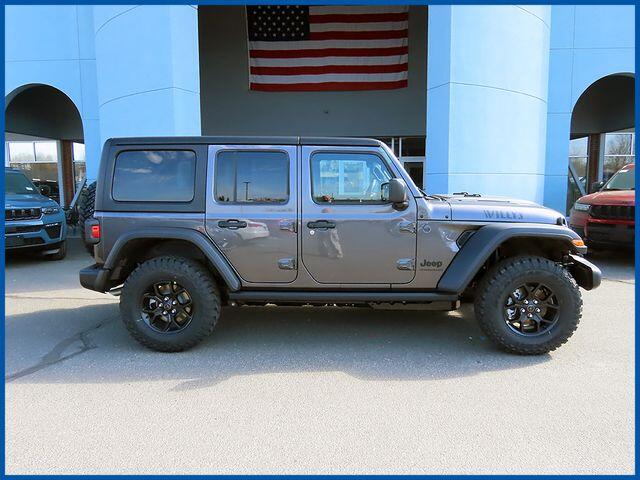 Wrangler Willys Willys 4 Door 4x4, 3.6L V6 24V VVT, 4WD, 2-Door Passive Entry, Front Door Locks, 4-Wheel Drive Swing Gate Decal, 4.10 Rear Axle Ratio, 7 and 4 Pin Wiring Harness, Advanced Brake Assist, Air Conditioning with Auto Temp Control, Air Filtering, Automatic Headlamps, Auxiliary Switches, Class II Receiver Hitch, Cluster 7.0'' TFT Color Display, Convenience Group, Conventional Differential Front Axle, Corning Gorilla Glass, Dana M210 Wide HD Tube Front Axle, Dana M220 Wide Rear Axle, Daytime Running Lamps LED Accents, Deep Tint Sunscreen Windows, E-Locker Rear Axle, Emergency/Assistance Call, Enhanced Adaptive Cruise Control, Front LED Fog Lamps, Full Speed Forward Collision Warning Plus, Heated Front Seats, Heated Steering Wheel, Injection Molded Black Rear Bumper, LED Premium Reflector Headlamps, Mold in Color Bumper with Gloss Black, Molded in Color Rubicon Highline Flare, MOPAR All-Weather Floor Mats, Off-Road Plus Mode, Power Heated Mirrors, Premium Wrapped Steering Wheel, Quick Order Package 24W Willys, Security Alarm, Sun Visors with Illuminated Vanity Mirrors, Trailer Tow and Auxiliary Switch Group, Universal Garage Door Opener, Wheels: 17'' x 7.5'' Painted Black, Willy's Suspension, Willys Hood Decal.