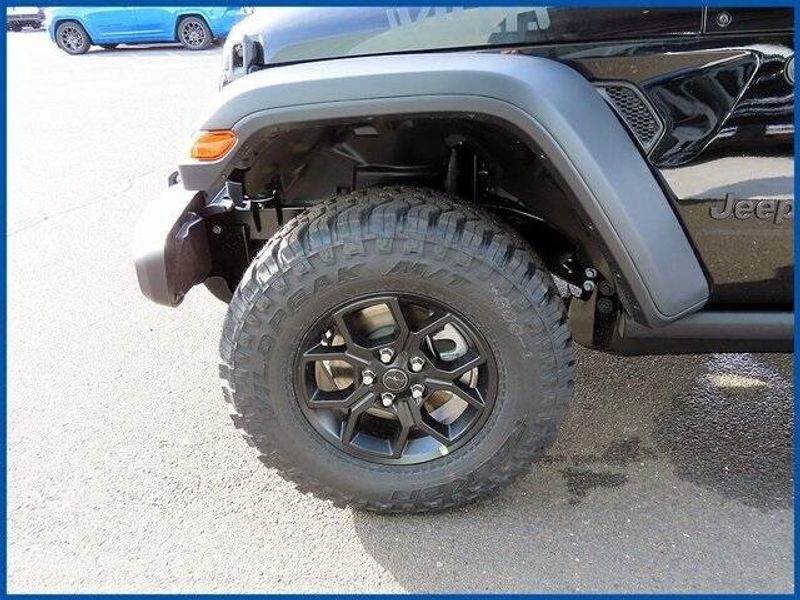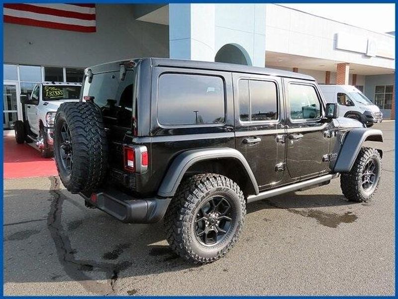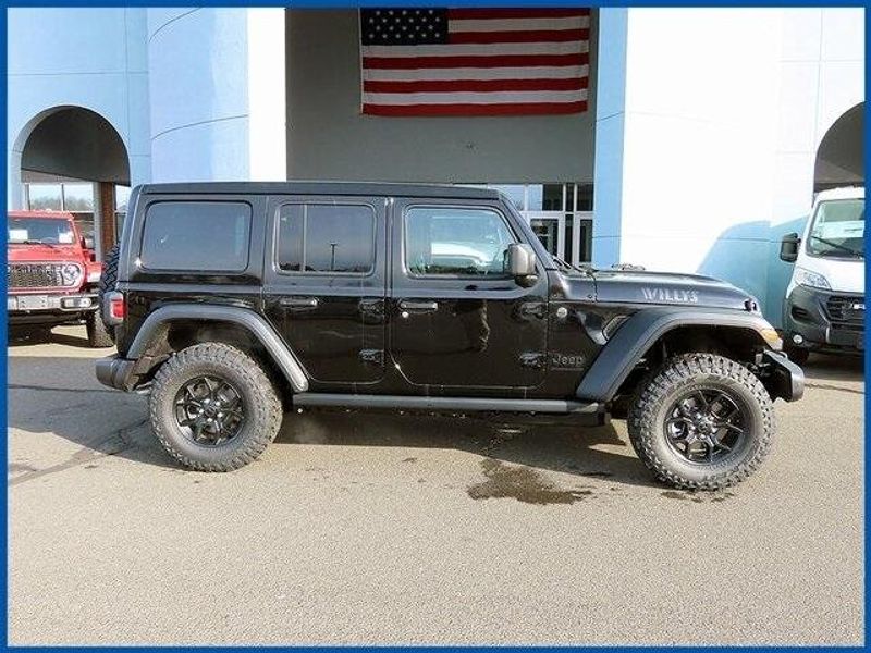 Wrangler Willys Willys 4 Door 4x4, 3.6L V6 24V VVT, 4WD, Black Clearcoat, 2-Door Passive Entry, Front Door Locks, 4-Wheel Drive Swing Gate Decal, 4.10 Rear Axle Ratio, 7 and 4 Pin Wiring Harness, 8 Speakers, Advanced Brake Assist, Air Conditioning with Auto Temp Control, Air Filtering, AM/FM radio: SiriusXM with 360L, Automatic Headlamps, Auxiliary Switches, Black Grille, Class II Receiver Hitch, Cluster 7.0'' TFT Color Display, Convenience Group, Conventional Differential Front Axle, Corning Gorilla Glass, Dana M210 Wide HD Tube Front Axle, Dana M220 Wide Rear Axle, Daytime Running Lamps LED Accents, Deep Tint Sunscreen Windows, E-Locker Rear Axle, Emergency/Assistance Call, Enhanced Adaptive Cruise Control, Front LED Fog Lamps, Full Speed Forward Collision Warning Plus, Heated Front Seats, Heated Steering Wheel, Injection Molded Black Rear Bumper, LED Premium Reflector Headlamps, Mold in Color Bumper with Gloss Black, Molded in Color Rubicon Highline Flare, MOPAR All-Weather Floor Mats, Off-Road Plus Mode, Power Heated Mirrors, Premium Wrapped Steering Wheel, Quick Order Package 24W Willys, Radio data system, Radio: Uconnect 5 with 12.3'' Display, Security Alarm, SiriusXM with 360L, Sun Visors with Illuminated Vanity Mirrors, Trailer Tow and Auxiliary Switch Group, Universal Garage Door Opener, Wheels: 17'' x 7.5'' Painted Black, Willy's Suspension, Willys Hood Decal.