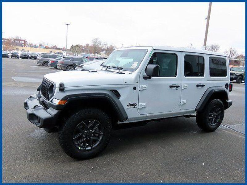 Wrangler Sport S Sport S 4 Door 4x4, 3.6L V6 24V VVT, 4WD, Bright White Clearcoat, Black Cloth, 12.3'' Touchscreen Display, 2-Door Passive Entry, Front Door Locks, 4G LTE Wi-Fi Hot Spot, 8 Speakers, Advanced Brake Assist, Air Conditioning with Auto Temp Control, Air Filtering, AM/FM radio: SiriusXM with 360L, Apple CarPlay, Automatic Headlamps, Cluster 7.0'' TFT Color Display, Convenience Group, Corning Gorilla Glass, Deep Tint Sunscreen Windows, Emergency/Assistance Call, Enhanced Adaptive Cruise Control, Full Speed Forward Collision Warning Plus, Heated Front Seats, Heated Steering Wheel, Power Heated Mirrors, Premium Wrapped Steering Wheel, Quick Order Package 24S Sport S, Radio data system, Radio: Uconnect 5 with 12.3'' Display, Security Alarm, SiriusXM with 360L, Sun Visors with Illuminated Vanity Mirrors, Universal Garage Door Opener, Wheels: 17'' x 7.5'' Gray.