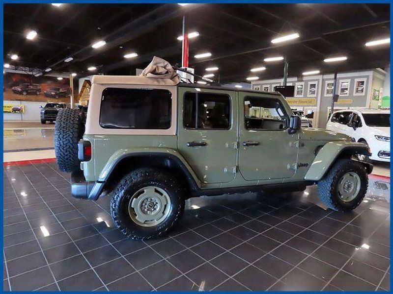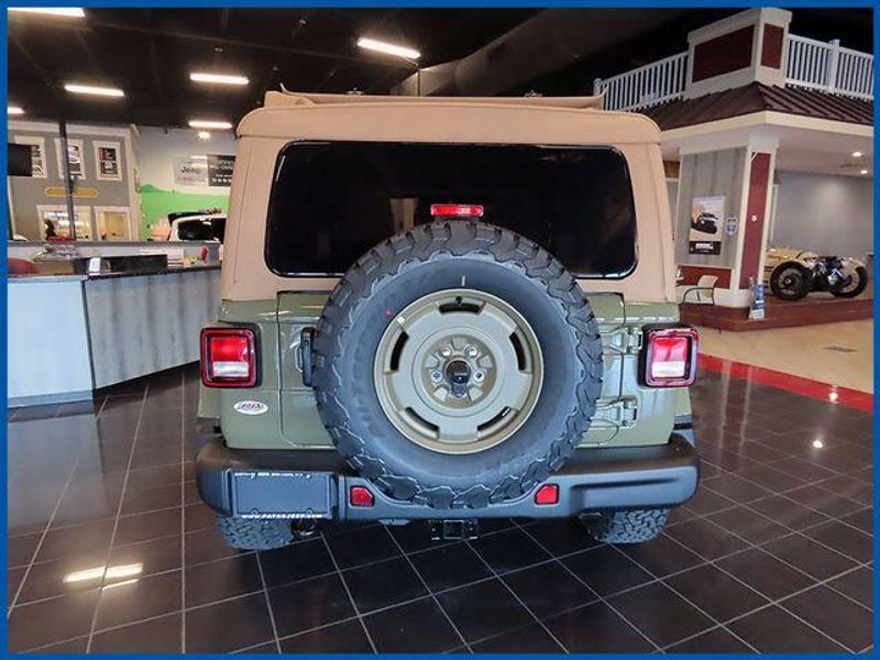 Wrangler Willys Willys 41 4 Door 4x4, 2.0L I4 DOHC, 4WD, Tan Cloth, 2-Door Passive Entry, Front Door Locks, 4.10 Rear Axle Ratio, 4WD Willys '41 Swing Gate Decal, 7 and 4 Pin Wiring Harness, 97 MPH Vehicle Max Speed Calibration, Adaptive Cruise Control with Stop, Advanced Brake Assist, Air Conditioning with Auto Temp Control, Air Filtering, Automatic Headlamps, Auxiliary Switches, Body Color Grille with Gloss Black Rings, Body Color Rubicon Highline Flare, Class II Receiver Hitch, Cloth Low-Back Bucket Seats, Cluster 7.0'' TFT Color Display, Convenience Group, Conventional Differential Front Axle, Corning Gorilla Glass, Dana M210 Wide HD Tube Front Axle, Dana M220 Wide Rear Axle, Daytime Running Lamps LED Accents, Deep Tint Sunscreen Windows, E-Locker Rear Axle, Emergency/Assistance Call, Front LED Fog Lamps, Full Speed Forward Collision Warning Plus, Heated Front Seats, Heated Steering Wheel, LED Premium Reflector Headlamps, MOPAR All-Weather Floor Mats, Off-Road Plus Mode, Power Dome Dual Vented Hood, Power Heated Mirrors, Premium Tan Sunrider Soft Top, Premium Wrapped Steering Wheel, Quick Order Package 22H Willys 41, Security Alarm, Steel Front Bumper, Steel Power Dome Hood Package, Steel Rear Bumper, Sun Visors with Illuminated Vanity Mirrors, Universal Garage Door Opener, Wheels: 17'' x 7.5'' Fully Painted, Willy's Suspension, Willys '41 Retro Edition Buzz Model, Willys '41 Retro Edition Hood Decal, Willys '41 Retro Edition Tailgate Plaque, Willys '41 Retro Edition Wrangler Decal, Willys '41 Retro Shift Bezel Insert, Willys '41 US Edition U.S. Hood Decal.