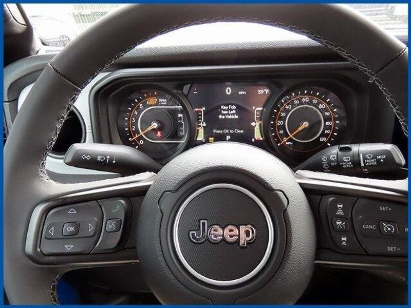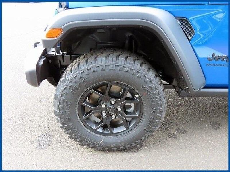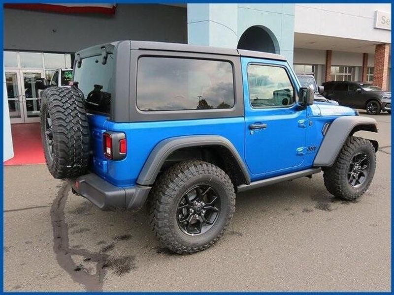 Wrangler Willys Willys 2 Door 4x4, 2.0L I4 DOHC, Hydro Blue Pearl Coat, 2-Door Passive Entry, Front Door Locks, 4-Wheel Drive Swing Gate Decal, 4.10 Rear Axle Ratio, 7 & 4 Pin Wiring Harness, 8 Speakers, Advanced Brake Assist, Air Conditioning w/Auto Temperature Control, Air Filtering, AM/FM radio: SiriusXM with 360L, Automatic Headlamps, Auxiliary Switches, Black Grille, Class II Receiver Hitch, Cluster 7.0'' TFT Color Display, Convenience Group, Conventional Differential Front Axle, Corning Gorilla Glass, Dana M210 Wide HD Tube Front Axle, Dana M220 Wide Rear Axle, Daytime Running Lamps LED Accents, Deep Tint Sunscreen Windows, E-Locker Rear Axle, Emergency/Assistance Call, Enhanced Adaptive Cruise Control, Front LED Fog Lamps, Front License Plate Bracket, Full Speed Forward Collision Warning Plus, Heated Front Seats, Heated Steering Wheel, Injection Molded Black Rear Bumper, LED Premium Reflector Headlamps, Mold In Color Bumper w/Gloss Black, Molded in Color Rubicon Highline Flare, MOPAR All-Weather Floor Mats, Off-Road Plus Mode, Power Heated Mirrors, Premium Wrapped Steering Wheel, Quick Order Package 22W Willys, Radio data system, Radio: Uconnect 5 w/12.3'' Display, Remote Start System, Security Alarm, Sun Visors w/Illuminated Vanity Mirrors, Universal Garage Door Opener, Wheels: 17'' x 7.5'' Painted Black, Willy's Suspension, Willys Hood Decal.