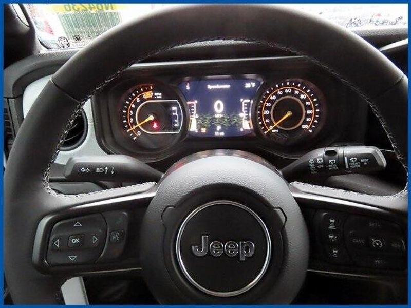 Wrangler Sport S Sport S 2 Door 4x4, 2.0L I4 DOHC, Bright White Clearcoat, 2-Door Passive Entry, Front Door Locks, 8 Speakers, Advanced Brake Assist, Air Conditioning w/Auto Temperature Control, Air Filtering, AM/FM radio: SiriusXM with 360L, Automatic Headlamps, Cluster 7.0'' TFT Color Display, Convenience Group, Corning Gorilla Glass, Deep Tint Sunscreen Windows, Emergency/Assistance Call, Enhanced Adaptive Cruise Control, Full Speed Forward Collision Warning Plus, Heated Front Seats, Heated Steering Wheel, Power Heated Mirrors, Premium Wrapped Steering Wheel, Quick Order Package 22S Sport S, Radio data system, Radio: Uconnect 5 w/12.3'' Display, Remote Start System, Security Alarm, Sun Visors w/Illuminated Vanity Mirrors, Universal Garage Door Opener, Wheels: 17'' x 7.5'' Gray.