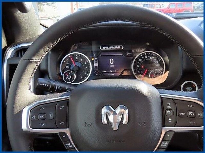 3.0L I6, Granite Crystal Metallic Clearcoat, Black Cloth, 115V Auxiliary Power Outlet, 115V Auxiliary Rear Power Outlet, 12'' Touchscreen Display, 2nd Row in Floor Storage Bins, 3 Rear Seat Head Restraints, 4 Way Front Headrests, 400W Inverter, 4G LTE Wi-Fi Hot Spot, 9 Amplified Speakers with Subwoofer, Accent Color Door Handles, Accent Color Premium Power Mirrors, Accent Color Tailgate Handle, Air Conditioning ATC with Dual Zone Control, Anti-Spin Differential Rear Axle, Apple CarPlay, Auto Power-Folding Mirrors, Auto-Dimming Exterior Driver Mirror, Auto-Dimming Rear-View Mirror, Bed Utility Group, Big Horn Level 2 Equipment Group, Black Exterior Mirrors, Black Exterior Truck Badging, Black Headlamp Bezels, Black Interior Accents, Black Painted Exterior Mirrors Caps, Black Premium Power Mirrors, Black Tail Lamp Bezels, Body Color Fender Flares, Body Color Front Bumper, Body Color Rear Bumper with Step Pads, Bucket Seats, Center Console Parts Module, Cluster 7.0'' TFT Color Display, Configurable Drive Mode, Connected Travel and Traffic Services, Connectivity - US/Canada, Convex Wide-Angle Exterior Mirror Insert, Deluxe Cloth Bucket Seats, Disassociated Touchscreen Display, Dual Exhaust with Black Tips, Exterior 115V AC Outlet, Exterior Mirrors Courtesy Lamps, Exterior Mirrors with Heating Element, Exterior Mirrors with Supplemental Signals, Front Seat Back Map Pockets, Full Length Floor Console, Global Telematics Box Module, Glove Box Lamp, Google Android Auto, GPS Antenna Input, GPS Navigation, Grille Black Surround Black Mesh, HD Radio, Heated Front Seats, Heated Steering Wheel, Integrated Center Stack Radio, Integrated Voice Command with Bluetooth, Leather Wrapped Steering Wheel, LED Dome Lamp with on/Off Switch, LED Footwell Lighting, Manual Adjust 4-Way Front Passenger Seat, Media Hub with 2 Charge Only USBs, MOPAR 4 Adjustable Cargo Tie-Down Hooks, MOPAR Spray in Bedliner, Night Edition, Overhead LED Lamps, Pick-Up Box Lighting, Power 2-Way Driver Lumbar Adjust, Power Adjust 8-Way Driver Seat, Power Adjustable Pedals, Premium Overhead Console, Quick Order Package 21Z Big Horn, Radio: Uconnect 5 Navigation with 12.0'' Display, RAM Grille Badge - Black, Rear 60/40 Folding Seat, Rear Center Armrest, Rear Power Sliding Window, Rear Window Defroster, Remote Tailgate Release, Security Alarm, SiriusXM Radio Service, SiriusXM with 360L, Steering Wheel Mounted Audio Controls, Sun Visors with Illuminated Vanity Mirrors, Universal Garage Door Opener, USB Host Flip, Wheels: 20'' x 9.0'' Aluminum Painted Clad, Wheels: 20'' x 9'' Aluminum Chrome Clad.