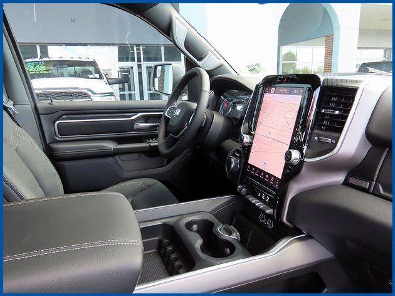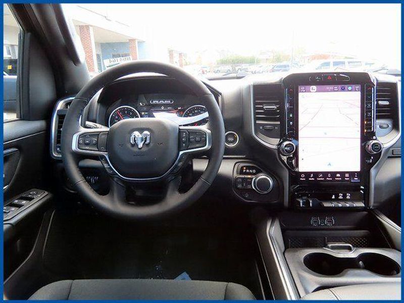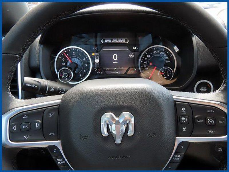 HEMI 5.7L V8 Multi Displacement VVT eTorque, 8-Speed Automatic, Forged Blue Metallic, 115V Auxiliary Power Outlet, 115V Auxiliary Rear Power Outlet, 12'' Touchscreen Display, 2nd Row In Floor Storage Bins, 3 Rear Seat Head Restraints, 4 Way Front Headrests, 400W Inverter, 4G LTE Wi-Fi Hot Spot, 9 Amplified Speakers w/Subwoofer, Accent Color Door Handles, Accent Color Premium Power Mirrors, Accent Color Tailgate Handle, Air Conditioning ATC w/Dual Zone Control, Anti-Spin Differential Rear Axle, Apple CarPlay, Auto Power-Folding Mirrors, Auto-Dimming Exterior Driver Mirror, Auto-Dimming Rear-View Mirror, Bed Utility Group, Big Horn Level 2 Equipment Group, Black Exterior Mirrors, Black Exterior Truck Badging, Black Headlamp Bezels, Black Interior Accents, Black Painted Exterior Mirrors Caps, Black Premium Power Mirrors, Black Tail Lamp Bezels, Body Color Fender Flares, Body Color Front Bumper, Body Color Rear Bumper w/Step Pads, Bucket Seats, Center Console Parts Module, Cluster 7.0'' TFT Color Display, Configurable Drive Mode, Connected Travel & Traffic Services, Connectivity - US/Canada, Convex Wide-Angle Exterior Mirror Insert, Deluxe Cloth Bucket Seats, Disassociated Touchscreen Display, Dual Exhaust w/Black Tips, Exterior 115V AC Outlet, Exterior Mirrors Courtesy Lamps, Exterior Mirrors w/Heating Element, Exterior Mirrors w/Supplemental Signals, Front Seat Back Map Pockets, Full Length Floor Console, Global Telematics Box Module (TBM), Glove Box Lamp, Google Android Auto, GPS Antenna Input, GPS Navigation, Grille Black Surround Black Mesh, HD Radio, Heated Front Seats, Heated Steering Wheel, Integrated Center Stack Radio, Integrated Voice Command w/Bluetooth, Leather Wrapped Steering Wheel, LED Dome Lamp w/On/Off Switch, LED Footwell Lighting, Manual Adjust 4-Way Front Passenger Seat, Media Hub w/2 Charge Only USBs, MOPAR 4 Adjustable Cargo Tie-Down Hooks, MOPAR Spray In Bedliner, Night Edition, Overhead LED Lamps, Pick-Up Box Lighting, Power 2-Way Driver Lumbar Adjust, Power Adjust 8-Way Driver Seat, Power Adjustable Pedals, Premium Overhead Console, Quick Order Package 27Z Big Horn, Radio: Uconnect 5 Nav w/12.0'' Display, RAM Grille Badge - Black, Rear 60/40 Folding Seat, Rear Center Armrest, Rear Power Sliding Window, Rear Window Defroster, Remote Tailgate Release, Security Alarm, SiriusXM Radio Service, SiriusXM w/360L, Steering Wheel Mounted Audio Controls, Sun Visors w/Illuminated Vanity Mirrors, Universal Garage Door Opener, USB Host Flip, Wheels: 20'' x 9.0'' Aluminum Painted Clad, Wheels: 20'' x 9'' Aluminum Chrome Clad (WRK).