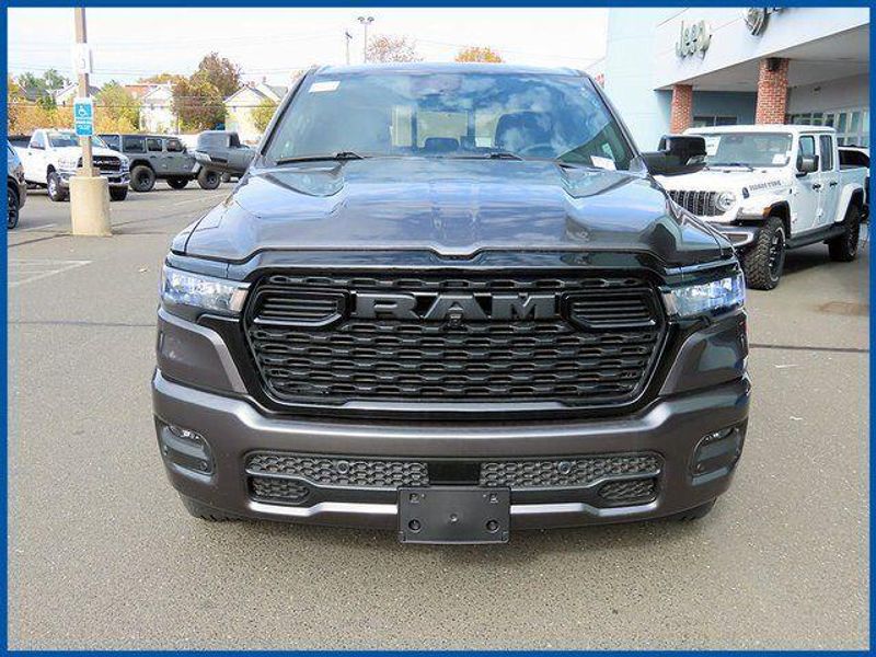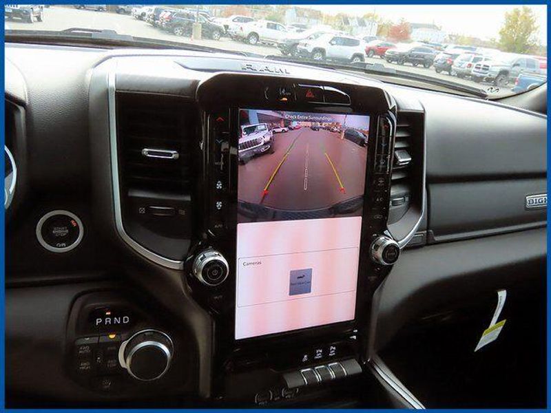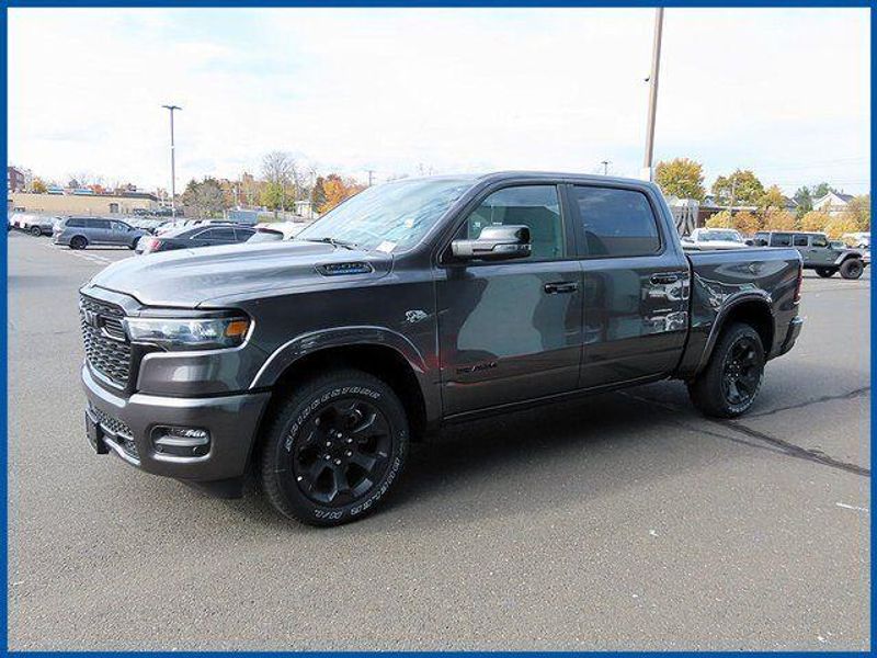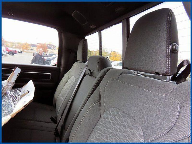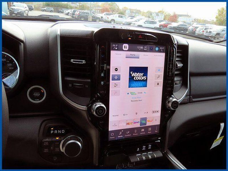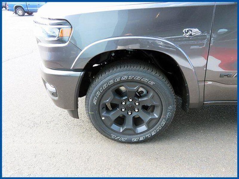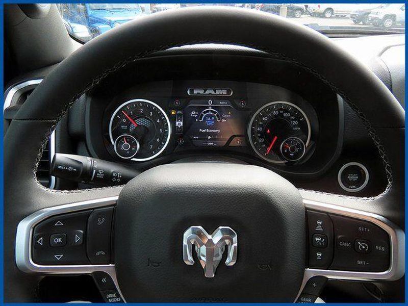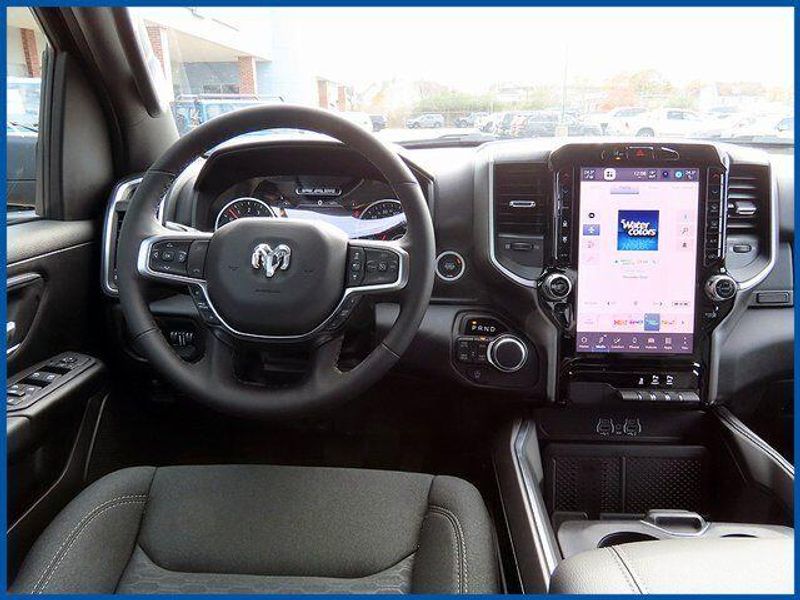 HEMI 5.7L V8 Multi Displacement VVT eTorque, 4WD, Granite Crystal Metallic Clearcoat, 115V Auxiliary Power Outlet, 115V Auxiliary Rear Power Outlet, 12'' Touchscreen Display, 2nd Row In Floor Storage Bins, 3 Rear Seat Head Restraints, 4 Way Front Headrests, 400W Inverter, 4G LTE Wi-Fi Hot Spot, 9 Amplified Speakers w/Subwoofer, Accent Color Door Handles, Accent Color Premium Power Mirrors, Accent Color Tailgate Handle, Air Conditioning ATC w/Dual Zone Control, Anti-Spin Differential Rear Axle, Apple CarPlay, Auto Power-Folding Mirrors, Auto-Dimming Exterior Driver Mirror, Auto-Dimming Rear-View Mirror, Big Horn Level 2 Equipment Group, Black Exterior Mirrors, Black Exterior Truck Badging, Black Headlamp Bezels, Black Interior Accents, Black Painted Exterior Mirrors Caps, Black Premium Power Mirrors, Black Tail Lamp Bezels, Body Color Fender Flares, Body Color Front Bumper, Body Color Rear Bumper w/Step Pads, Bucket Seats, Center Console Parts Module, Cluster 7.0'' TFT Color Display, Configurable Drive Mode, Connected Travel & Traffic Services, Connectivity - US/Canada, Convex Wide-Angle Exterior Mirror Insert, Deluxe Cloth Bucket Seats, Disassociated Touchscreen Display, Dual Exhaust w/Black Tips, Exterior Mirrors Courtesy Lamps, Exterior Mirrors w/Heating Element, Exterior Mirrors w/Supplemental Signals, Front Seat Back Map Pockets, Full Length Floor Console, Global Telematics Box Module (TBM), Glove Box Lamp, Google Android Auto, GPS Antenna Input, GPS Navigation, Grille Black Surround Black Mesh, HD Radio, Heated Front Seats, Heated Steering Wheel, Integrated Center Stack Radio, Integrated Voice Command w/Bluetooth, Leather Wrapped Steering Wheel, LED Dome Lamp w/On/Off Switch, LED Footwell Lighting, Manual Adjust 4-Way Front Passenger Seat, Media Hub w/2 Charge Only USBs, Night Edition, Overhead LED Lamps, Power 2-Way Driver Lumbar Adjust, Power Adjust 8-Way Driver Seat, Power Adjustable Pedals, Premium Overhead Console, Quick Order Package 27Z Big Horn, Radio: Uconnect 5 Nav w/12.0'' Display, RAM Grille Badge - Black, Rear 60/40 Folding Seat, Rear Center Armrest, Rear Power Sliding Window, Rear Window Defroster, Remote Tailgate Release, Security Alarm, SiriusXM Radio Service, SiriusXM w/360L, Steering Wheel Mounted Audio Controls, Sun Visors w/Illuminated Vanity Mirrors, Universal Garage Door Opener, USB Host Flip, Wheels: 20'' x 9.0'' Aluminum Painted Clad, Wheels: 20'' x 9'' Aluminum Chrome Clad (WRK).