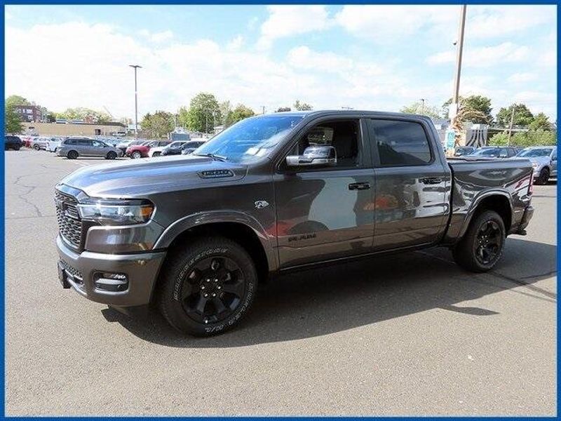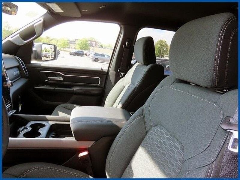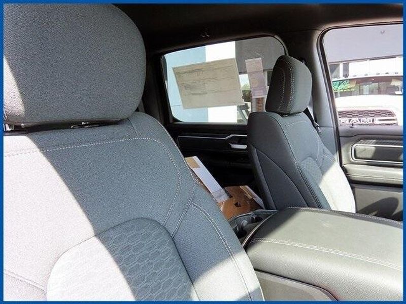 1500 Big Horn/Lone Star Big Horn 4x4 Crew Cab 5'7'' Box, HEMI 5.7L V8 Multi Displacement VVT eTorque, 4WD, Granite Crystal Metallic Clearcoat, 115V Auxiliary Power Outlet, 115V Auxiliary Rear Power Outlet, 12'' Touchscreen Display, 2nd Row In Floor Storage Bins, 3 Rear Seat Head Restraints, 4 Way Front Headrests, 400W Inverter, 4G LTE Wi-Fi Hot Spot, 6 Speakers, 9 Amplified Speakers w/Subwoofer, Accent Color Door Handles, Accent Color Premium Power Mirrors, Accent Color Tailgate Handle, Air Conditioning ATC w/Dual Zone Control, Anti-Spin Differential Rear Axle, Apple CarPlay, Auto Power-Folding Mirrors, Auto-Dimming Exterior Driver Mirror, Auto-Dimming Rear-View Mirror, Bed Utility Group, Big Horn Level 2 Equipment Group, Black Exterior Mirrors, Black Exterior Truck Badging, Black Headlamp Bezels, Black Interior Accents, Black Painted Exterior Mirrors Caps, Black Premium Power Mirrors, Black Tail Lamp Bezels, Body Color Fender Flares, Body Color Front Bumper, Body Color Rear Bumper w/Step Pads, Bucket Seats, Center Console Parts Module, Cluster 7.0'' TFT Color Display, Configurable Drive Mode, Connected Travel & Traffic Services, Connectivity - US/Canada, Convex Wide-Angle Exterior Mirror Insert, Deluxe Cloth Bucket Seats, Disassociated Touchscreen Display, Dual Exhaust w/Black Tips, Exterior 115V AC Outlet, Exterior Mirrors Courtesy Lamps, Exterior Mirrors w/Heating Element, Exterior Mirrors w/Supplemental Signals, Front Seat Back Map Pockets, Full Length Floor Console, Global Telematics Box Module (TBM), Glove Box Lamp, Google Android Auto, GPS Antenna Input, GPS Navigation, Grille Black Surround Black Mesh, HD Radio, Heated Front Seats, Heated Steering Wheel, Integrated Center Stack Radio, Integrated Voice Command w/Bluetooth, Leather Wrapped Steering Wheel, LED Dome Lamp w/On/Off Switch, LED Footwell Lighting, Manual Adjust 4-Way Front Passenger Seat, Media Hub w/2 Charge Only USBs, MOPAR 4 Adjustable Cargo Tie-Down Hooks, MOPAR Spray In Bedliner, Night Edition, Overhead LED Lamps, Pick-Up Box Lighting, Power 2-Way Driver Lumbar Adjust, Power Adjust 8-Way Driver Seat, Power Adjustable Pedals, Premium Overhead Console, Quick Order Package 27Z Big Horn, Radio: Uconnect 5 Nav w/12.0'' Display, RAM Grille Badge - Black, Rear 60/40 Folding Seat, Rear Center Armrest, Rear Power Sliding Window, Rear Window Defroster, Remote Tailgate Release, Secondary Active Grille Shutters, Security Alarm, SiriusXM Radio Service, SiriusXM w/360L, Steering Wheel Mounted Audio Controls, Sun Visors w/Illuminated Vanity Mirrors, Universal Garage Door Opener, USB Host Flip, Wheels: 20'' x 9.0'' Aluminum Painted Clad, Wheels: 20'' x 9'' Aluminum Chrome Clad (WRK), Wireless Charging Pad.