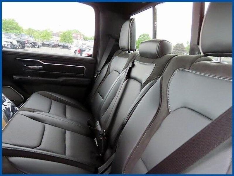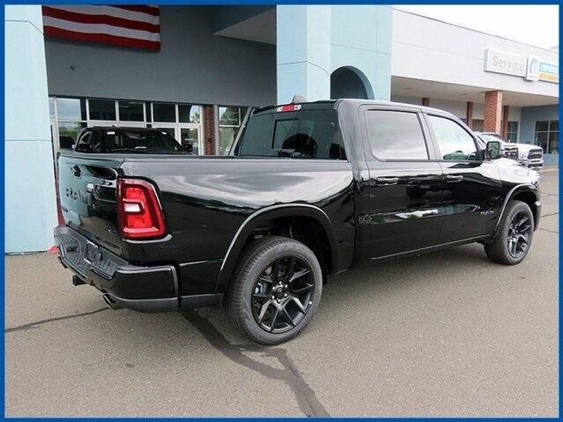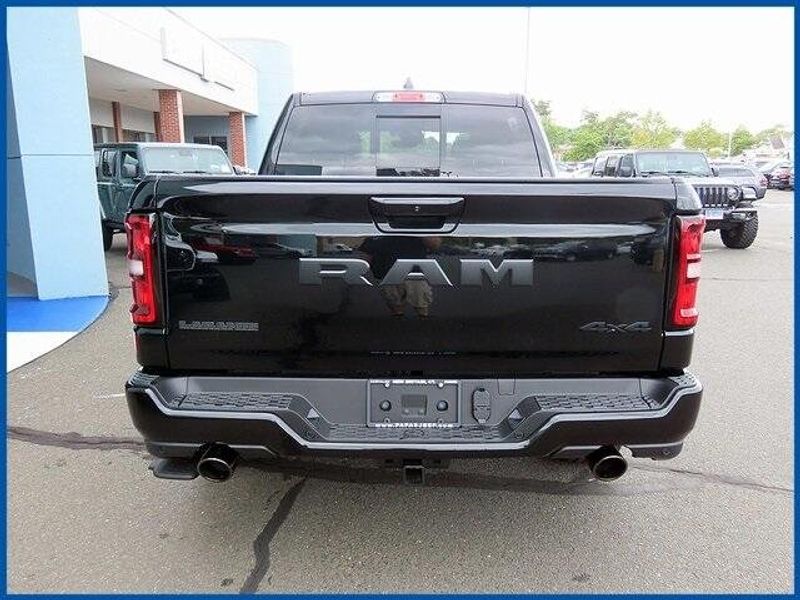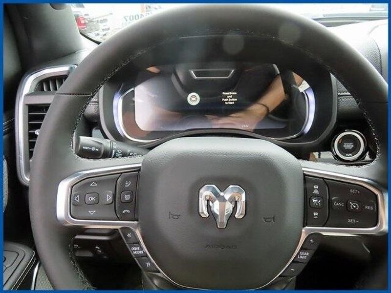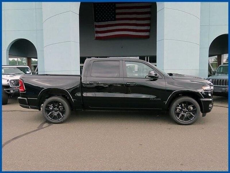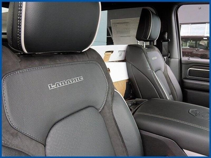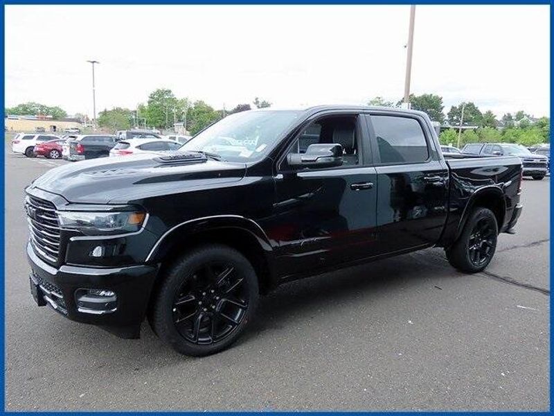 1500 Laramie Laramie 4x4 Crew Cab 5'7'' Box, 3.0L I6, Diamond Black Crystal Pearlcoat, 14.4'' Touchscreen Display, 4G LTE Wi-Fi Hot Spot, Accent Color Door Handles, Accent Color Premium Power Mirrors, Accent Color Tailgate Handle, Anti-Spin Differential Rear Axle, Apple CarPlay, Auto Power-Folding Mirrors, Auto-Dimming Exterior Driver Mirror, Bed Utility Group, Black Exterior Truck Badging, Black Headlamp Bezels, Black Interior Accents, Black Painted Exterior Mirrors Caps, Black Tail Lamp Bezels, Body Color Front Bumper, Body Color Rear Bumper w/Step Pads, Cluster 12'' TFT Color Display, Connected Travel & Traffic Services, Connectivity - US/Canada, Convex Wide-Angle Exterior Mirror Insert, Disassociated Touchscreen Display, Dual Exhaust w/Black Tips, Dual Wireless Charging Pad, Exterior 115V AC Outlet, Exterior Mirrors Approach Lamps, Exterior Mirrors Courtesy Lamps, Exterior Mirrors w/Heating Element, Exterior Mirrors w/Memory, Exterior Mirrors w/Supplemental Signals, Front Passenger Interactive Display, Global Telematics Box Module (TBM), Google Android Auto, GPS Antenna Input, GPS Navigation, Grille Surround 3 Black Texture 2 Black, harman/kardon 19 Speaker Premium Sound, HD Radio, Heated door mirrors, Integrated Center Stack Radio, Integrated Voice Command w/Bluetooth, Laramie Level 2 Equipment Group, MOPAR 4 Adjustable Cargo Tie-Down Hooks, Navigation System, Night Edition, Pirelli Brand Tires, Power Tailgate, Proximity Approach/Departure Lamps, Quick Order Package 21H Laramie, Radio: Uconnect 5 Nav w/14.4'' Display, Rain Sensitive Windshield Wipers, RAM Grille Badge - Black, Secondary Active Grille Shutters, SiriusXM Radio Service, SiriusXM w/360L, Smartphone As A Key Capable, Sport Performance Hood, USB Host Flip, Wheels: 22'' x 9'' Forged Aluminum.
