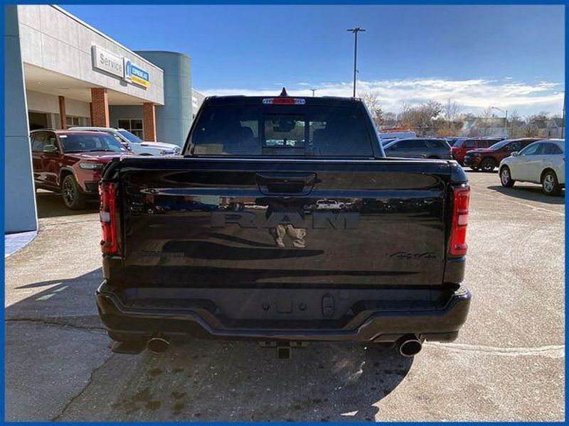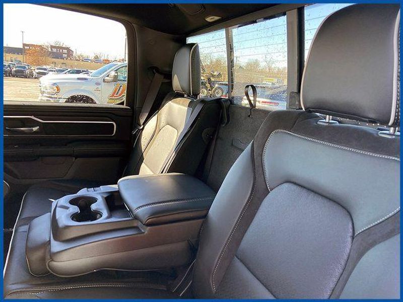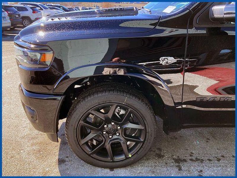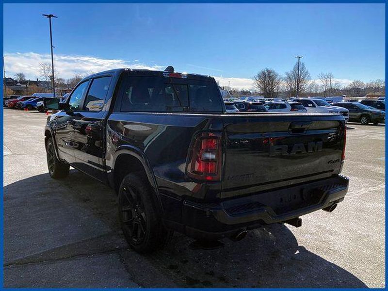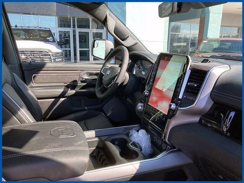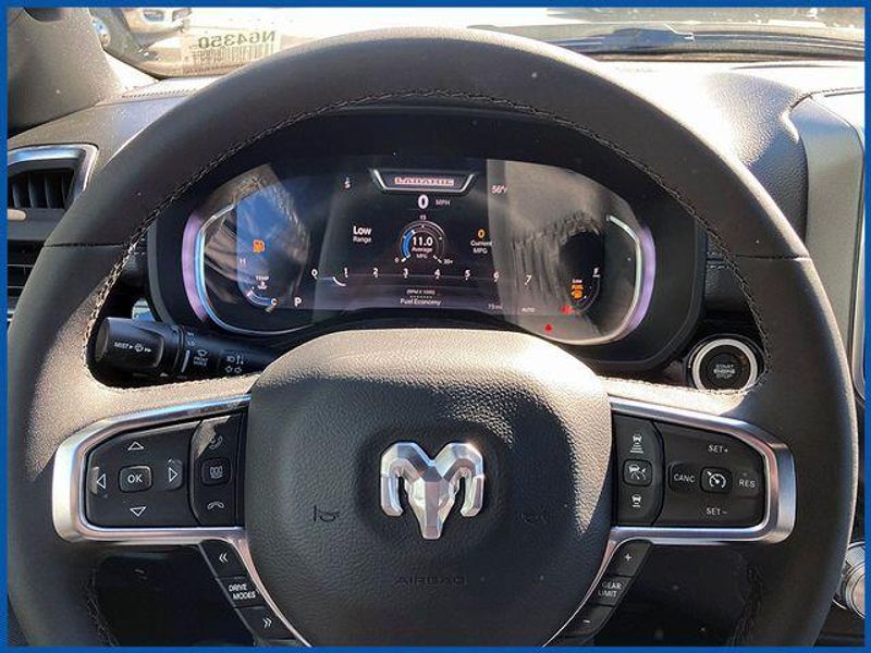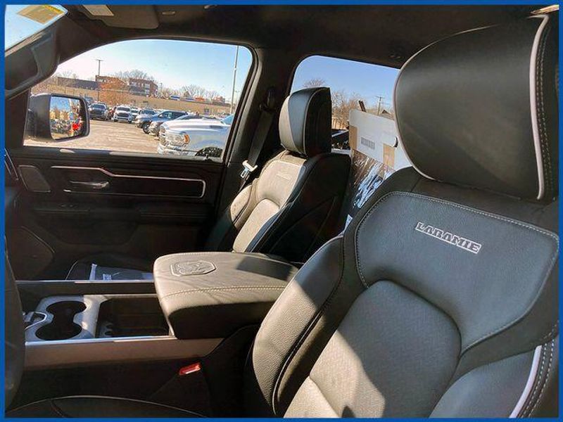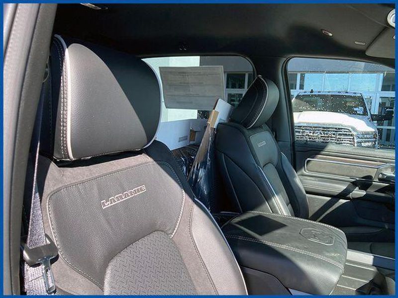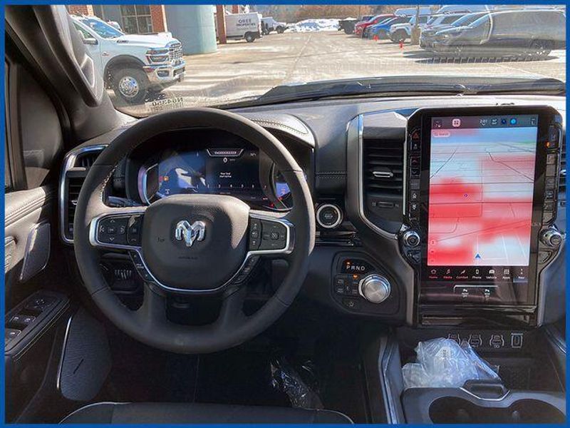 1500 Laramie Laramie 4x4 Crew Cab 5'7'' Box, HEMI 5.7L V8 Multi Displacement VVT eTorque, 4WD, Diamond Black Crystal Pearlcoat, 10 Speakers, 14.4'' Touchscreen Display, 4G LTE Wi-Fi Hot Spot, Accent Color Door Handles, Accent Color Premium Power Mirrors, Accent Color Tailgate Handle, Anti-Spin Differential Rear Axle, Auto Power-Folding Mirrors, Auto-Dimming Exterior Driver Mirror, Bed Utility Group, Black Exterior Truck Badging, Black Headlamp Bezels, Black Interior Accents, Black Painted Exterior Mirrors Caps, Black Tail Lamp Bezels, Body Color Front Bumper, Body Color Rear Bumper with Step Pads, Cluster 12'' TFT Color Display, Connected Travel and Traffic Services, Connectivity - US/Canada, Convex Wide-Angle Exterior Mirror Insert, Dual Exhaust with Black Tips, Exterior 115V AC Outlet, Exterior Mirrors Approach Lamps, Exterior Mirrors Courtesy Lamps, Exterior Mirrors with Heating Element, Exterior Mirrors with Memory, Exterior Mirrors with Supplemental Signals, Front Passenger Interactive Display, GPS Navigation, Grille Surround 3 Black Texture 2 Black, Harman/Kardon 19 Speaker Premium Sound, Integrated Center Stack Radio, Integrated Voice Command with Bluetooth, Laramie Level 2 Equipment Group, MOPAR 4 Adjustable Cargo Tie-Down Hooks, MOPAR Spray in Bedliner, Navigation System, Night Edition, Pirelli Brand Tires, Power Tailgate, Proximity Approach/Departure Lamps, Quick Order Package 27H Laramie, Radio: Uconnect 5 Nav with 14.4'' Display, Rain Sensitive Windshield Wipers, RAM Grille Badge - Black, SiriusXM Radio Service, SiriusXM with 360L, Sport Performance Hood, USB Host Flip, Wheels: 22'' x 9'' Forged Aluminum.