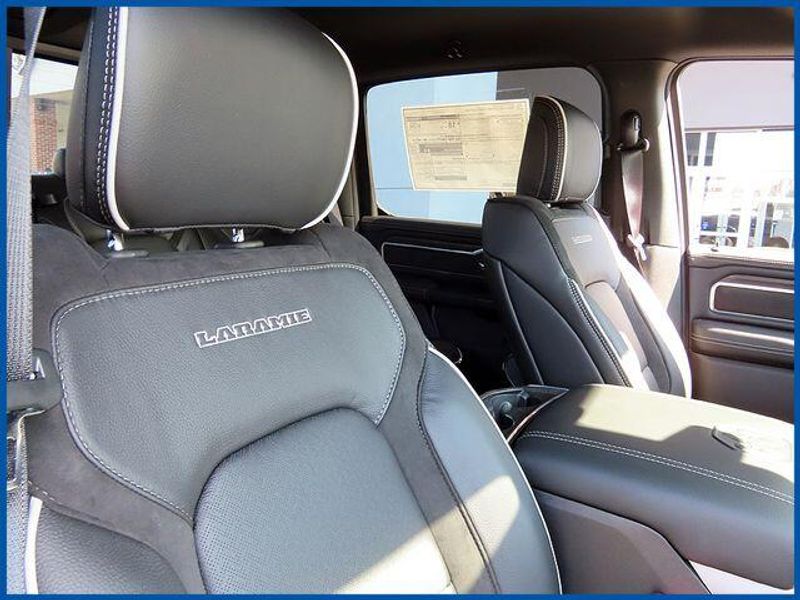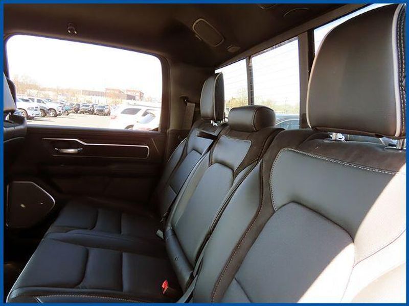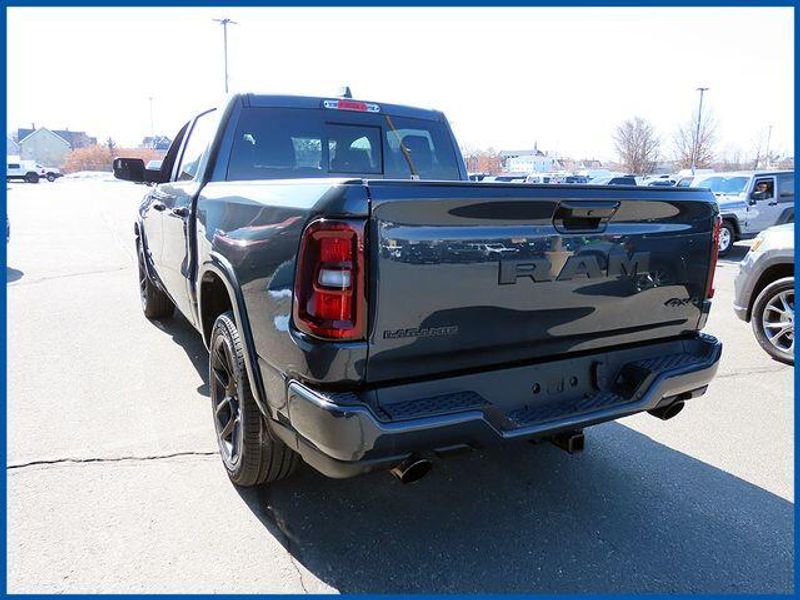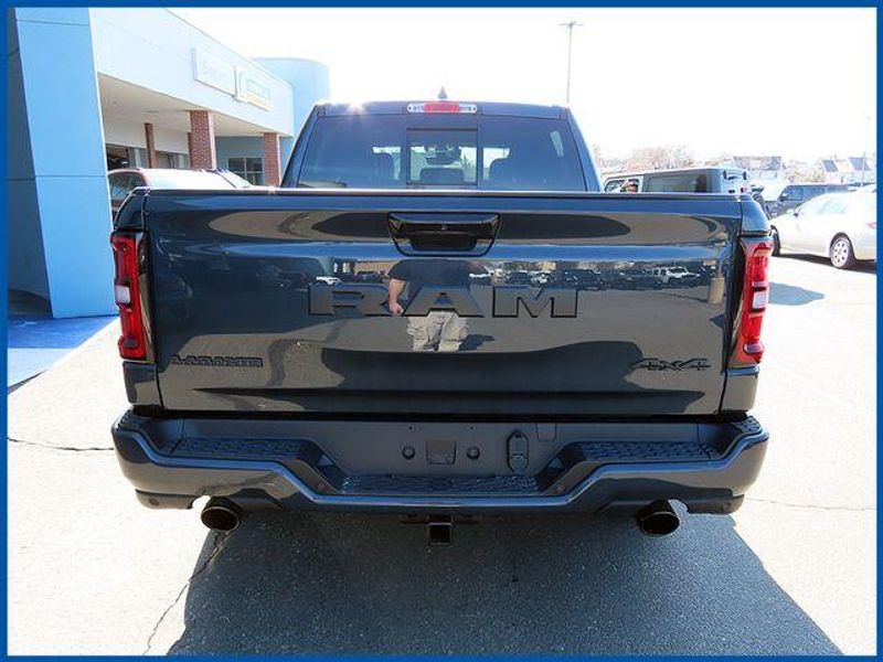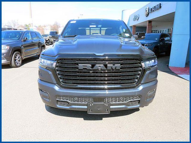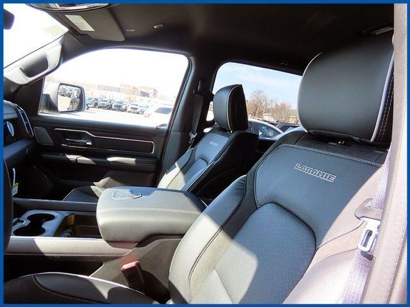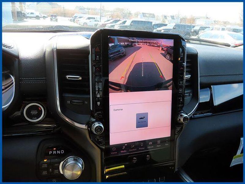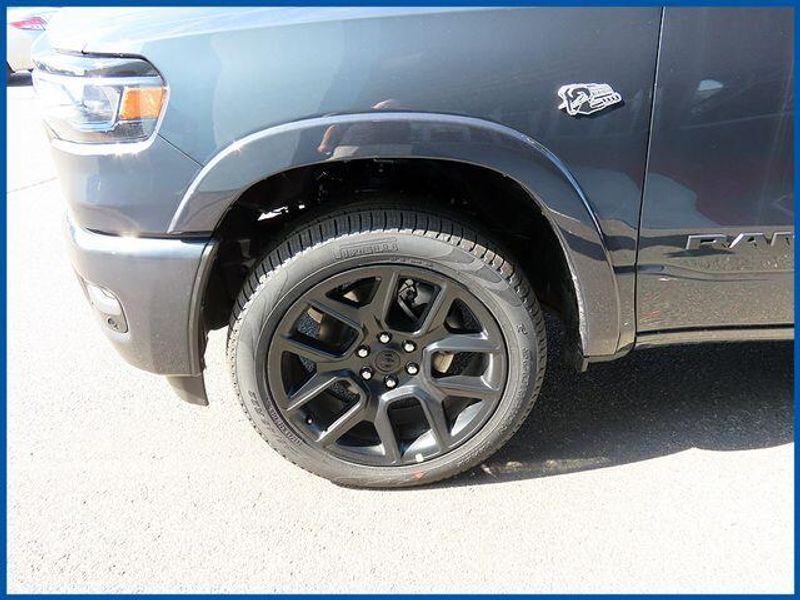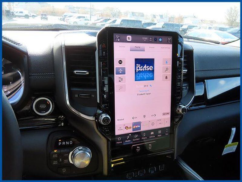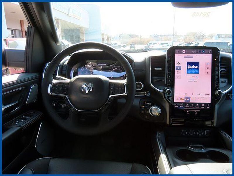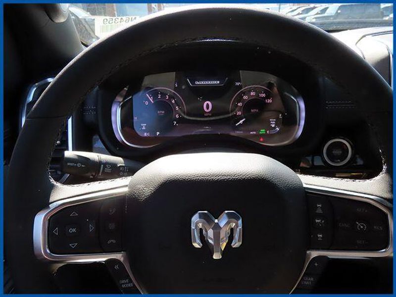 14.4'' Touchscreen Display, 4G LTE Wi-Fi Hot Spot, Accent Color Door Handles, Accent Color Premium Power Mirrors, Accent Color Tailgate Handle, Anti-Spin Differential Rear Axle, Auto Power-Folding Mirrors, Auto-Dimming Exterior Driver Mirror, Black Exterior Truck Badging, Black Headlamp Bezels, Black Interior Accents, Black Painted Exterior Mirrors Caps, Black Tail Lamp Bezels, Body Color Front Bumper, Body Color Rear Bumper with Step Pads, Cluster 12'' TFT Color Display, Connected Travel and Traffic Services, Connectivity - US/Canada, Convex Wide-Angle Exterior Mirror Insert, Dual Exhaust with Black Tips, Exterior Mirrors Approach Lamps, Exterior Mirrors Courtesy Lamps, Exterior Mirrors with Heating Element, Exterior Mirrors with Memory, Exterior Mirrors with Supplemental Signals, Front Passenger Interactive Display, GPS Navigation, Grille Surround 3 Black Texture 2 Black, Harman/Kardon 19 Speaker Premium Sound, Integrated Center Stack Radio, Integrated Voice Command with Bluetooth, Laramie Level 2 Equipment Group, Navigation System, Night Edition, Pirelli Brand Tires, Power Tailgate, Proximity Approach/Departure Lamps, Quick Order Package 27H Laramie, Radio: Uconnect 5 Nav with 14.4'' Display, Rain Sensitive Windshield Wipers, RAM Grille Badge - Black, SiriusXM Radio Service, SiriusXM with 360L, Sport Performance Hood, USB Host Flip, Wheels: 22'' x 9'' Forged Aluminum.