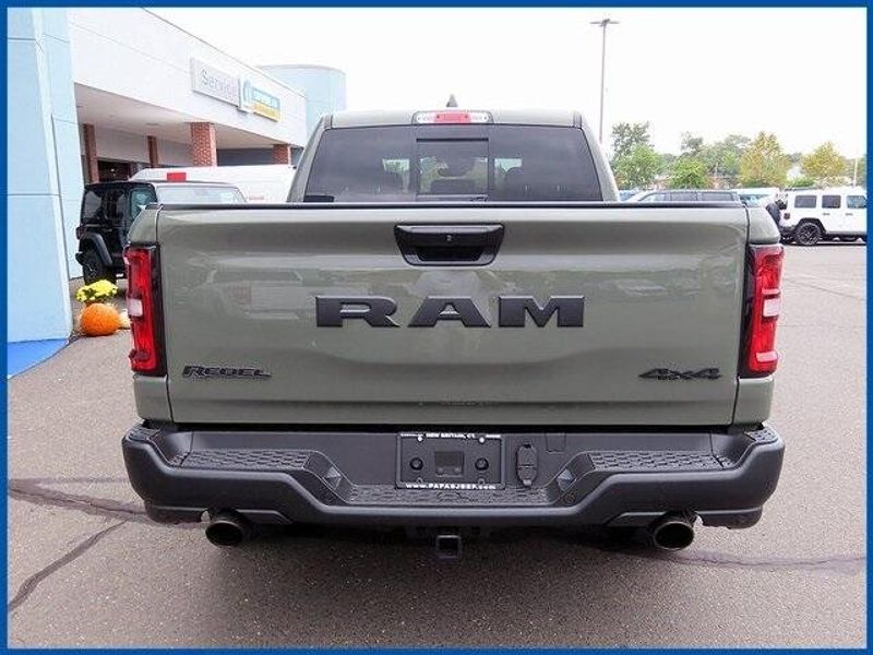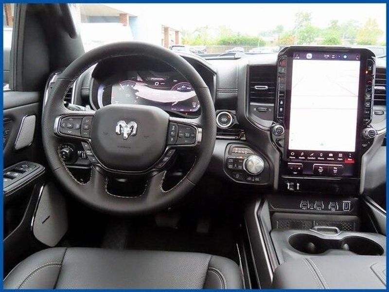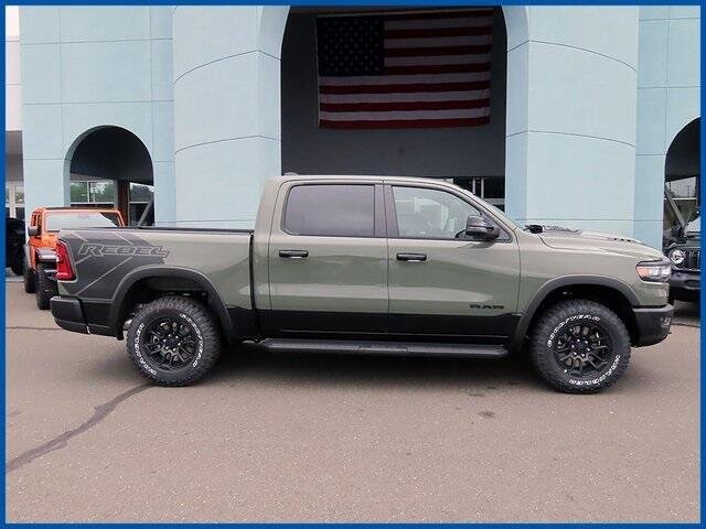 1500 Rebel Rebel 4x4 Crew Cab 5'7'' Box, 4WD, Canyon Lake, Black Leather, 115V Auxiliary Rear Power Outlet, 14.4'' Touchscreen Display, 2-Door Passive Entry, Front Door Locks, 4G LTE Wi-Fi Hot Spot, Accent Color Door Handles, Accent Color Premium Power Mirrors, Accent Color Tailgate Handle, Apple CarPlay, Auto Power-Folding Mirrors, Auto-Dimming Exterior Driver Mirror, Black Painted Exterior Mirrors Caps, Connected Travel & Traffic Services, Connectivity - US/Canada, Convex Wide-Angle Exterior Mirror Insert, Disassociated Touchscreen Display, Driver Seat Memory, Dual Wireless Charging Pad, Exterior Mirrors Approach Lamps, Exterior Mirrors Courtesy Lamps, Exterior Mirrors w/Heating Element, Exterior Mirrors w/Memory, Exterior Mirrors w/Supplemental Signals, Front Passenger Interactive Display, Global Telematics Box Module (TBM), Google Android Auto, GPS Antenna Input, GPS Navigation, harman/kardon 19 Speaker Premium Sound, HD Radio, Heated Second Row Seats, Integrated Center Stack Radio, Integrated Voice Command w/Bluetooth, Media Hub w/2 Charge Only USBs, Navigation System, Off-Road Information Pages, Power 2-Way Passenger Lumbar Adjust, Power Adjust 8-Way Front Passenger Seat, Power Adjustable Pedals w/Memory, Power Tailgate, Proximity Approach/Departure Lamps, Quick Order Package 21W Rebel, Radio: Uconnect 5 Nav w/14.4'' Display, Radio/Driver Seat/Mirrors/Pedals Memory, Rain Sensitive Windshield Wipers, Rear Window Defroster, Rebel Level 2 Equipment Group, Security Alarm, SiriusXM Radio Service, SiriusXM w/360L, Smartphone As A Key Capable, USB Host Flip.