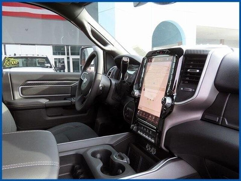 6.7L I6, 4WD, Bright White Clearcoat, Black Cloth, 115-Volt Auxiliary Front Power Outlet, 115V Auxiliary Rear Power Outlet, 12'' Touchscreen Display, 2 Way Rear Headrest Seat, 2nd Row in Floor Storage Bins, 4 Way Front Headrests, 400W Inverter, 4G LTE Wi-Fi Hot Spot, 9 Alpine Speakers with Subwoofer, Active Lane Management System, Adaptive Steering System, Air Conditioning ATC with Dual Zone Control, Alexa Built-in, Anti-Spin Differential Rear Axle, Apple CarPlay, Auto High Beam Headlamp Control, Auto Power-Folding Mirrors, Auto-Dimming Rear-View Mirror, Big Horn Level 2 Plus Equipment Group, Black Exterior Mirrors, Black Exterior Truck Badging, Black Interior Accents, Black Wheel Center Hub, Blind Spot and Cross Path Detection, Body Color Grille-Surround, Bucket Seats, Center Stop Lamp with Cargo View Camera, Cluster 7.0'' TFT Color Display, Cold Weather Group, Connected Travel and Traffic Services, Connectivity - US/Canada, Dampened Tailgate, Disassociated Touchscreen Display, Drowsy Driver Detection, Dual Glove Boxes, Dual Wireless Charging Pad, Emergency Vehicle Alert System (EVAS), Engine Block Heater, Exterior 115V AC Outlet, Exterior Mirrors Courtesy Lamps, Exterior Mirrors with Heating Element, Exterior Mirrors with Supplemental Signals, Foam Bottle Insert (door Trim Panel), Folding Flat Load Floor Storage, Footwell Courtesy Lamp, For Details, Visit DriveUconnect.com, For More Info, Call 800-643-2112, Forward and Reverse Utility Lights, Front Seat Back Map Pockets, Full Length Upgraded Floor Console, Global Telematics Box Module, Gloss Black Nostrils/Mic Black Grille, Glove Box Lamp, Google Android Auto, GPS Antenna Input, GPS Navigation, HD Radio, Heated Front Seats, Heated Steering Wheel, Integrated Voice Command with Bluetooth, LED Bed Lighting, LED Tail Lamps, Locking Lower Glove Box, Luxury Steering Wheel, Manual Adjust 4-Way Front Passenger Seat, Media Hub with 2 Charge Only USBs, Mirror Running Lights, MOPAR Deployable Bed Step, MOPAR Spray in Bedliner, MOPAR Winter Front Grille Cover, Night Edition, Off-Road Info Pages, Painted Front Bumper, Painted Rear Bumper, Power 2-Way Driver Lumbar Adjust, Power Adjust 8-Way Driver Seat, Power Adjust Mirrors, Power Adjustable Pedals, Power Heated Folding Telescopic Mirrors, Power Telescoping Mirrors, Power-Adjustable Convex Aux Mirrors, Premium Cloth Bucket Seats, Quick Order Package 24Z Big Horn, Radio: Uconnect 5 Navigation with 12.0'' Display, Rain Sensitive Windshield Wipers, Rear 60/40 Folding Seat, Rear Dome with on/Off Switch Lamp, Rear Power Sliding Window, Red Tail Lamp Bezels, Remote Start System, Selectable Tire Fill Alert, SiriusXM Radio Service, SiriusXM with 360L, Steering Wheel Mounted Audio Controls, Sun Visors with Illuminated Vanity Mirrors, Surround View Camera System, Traffic Sign Recognition, Trailer Reverse Guidance, Trailer Tire Pressure Monitoring System, Trailer Tow Pages, Universal Garage Door Opener, Wheels: 20'' x 8.0'' Black Painted Aluminum.