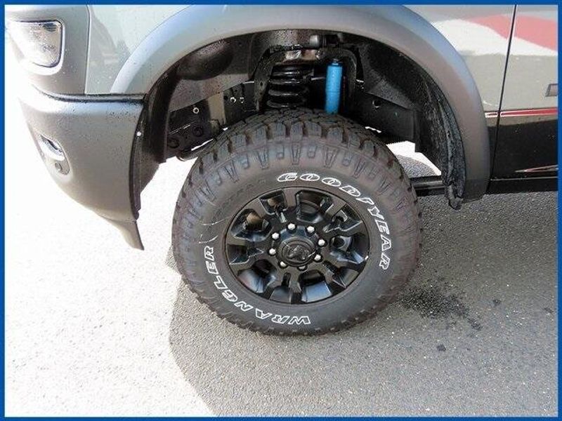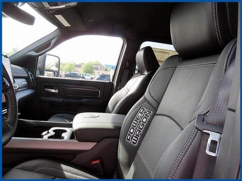 6.4L V8, 4WD, Ceramic Gray Clearcoat, 115V Auxiliary Rear Power Outlet, 2 Way Rear Headrest Seat, 4 Way Front Headrests, 4.10 Axle Ratio, 9 Alpine Speakers w/Subwoofer, Auto Adjust In Reverse Exterior Mirrors, Auto Dim Exterior Mirror, Auto High Beam Headlamp Control, Auto Power-Folding Mirrors, Auto-Dimming Exterior Passenger Mirror, Bed Convenience Group, Black Exterior Mirrors, Black Wheel Center Hub, Body Color Door Handles, Bucket Seats, Dual Wireless Charging Pad, Exterior Mirrors Courtesy Lamps, Exterior Mirrors w/Heating Element, Exterior Mirrors w/Memory, Exterior Mirrors w/Supplemental Signals, Folding Flat Load Floor Storage, Forward & Reverse Utility Lights, Front Disconnecting Stabilizer Bar, Front Door Locks 2-Door Passive Entry, Front Electric Winch, Front Seat Back Map Pockets, Full Length Upgraded Floor Console, GPS Navigation, Heated Front Seats, Heated Second Row Seats, Heated Steering Wheel, High Back Seats, Instrument Cluster Theme 5 - Power Wagon, Leather Trimmed Bucket Seats, LED Bed Lighting, LED Dome Lamp w/On/Off Switch, LED Interior Lighting, Media Hub w/2 Charge Only USBs, Mirror Running Lights, MOPAR Front & Rear Rubber Floor Mats, MOPAR Spray In Bedliner, Navigation System, Overhead LED Lamps, Power 2-Way Driver Lumbar Adjust, Power 2-Way Passenger Lumbar Adjust, Power Adjust 8-Way Driver Seat, Power Adjust 8-Way Front Passenger Seat, Power Adjust Mirrors, Power Adjustable Pedals w/Memory, Power Heated Fold Telescopic Mirrors w/Memory, Power Telescoping Mirrors, Power Wagon Instrument Panel Spec Plate, Power Wagon Level 1 Equipment Group, Power-Adjustable Convex Aux Mirrors, Premium Overhead Console, Quick Order Package 2UP Power Wagon, Radio: Uconnect 5 Nav w/12.0'' Display, Radio/Driver Seat/Mirrors/Pedals Memory, Rain Sensitive Windshield Wipers, Raised Ride Height, RAM Articulink Suspension, Rear 60/40 Folding Seat, Sport Performance Hood, Sun Visors w/Illuminated Vanity Mirrors, Tru-Lok Front & Rear Axles, Universal Garage Door Opener, Ventilated Front Seats, Wheels: 17'' x 8.0'' Black Painted Aluminum.
