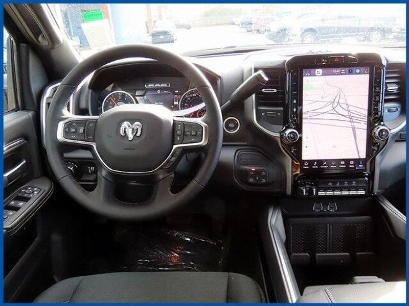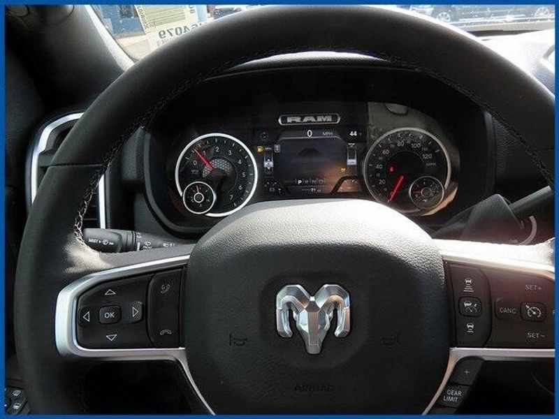6.4L V8, 8-Speed Automatic, Diamond Black Crystal Pearlcoat, Black Cloth, 115V Auxiliary Front Power Outlet, 115V Auxiliary Rear Power Outlet, 12'' Touchscreen Display, 2 Way Rear Headrest Seat, 2nd Row In Floor Storage Bins, 4 Way Front Headrests, 400W Inverter, 4G LTE Wi-Fi Hot Spot, 9 Alpine Speakers w/Subwoofer, Active Lane Management System, Adaptive Steering System, Air Conditioning ATC w/Dual Zone Control, Alexa Built-In, Anti-Spin Differential Rear Axle, Apple CarPlay, Auto High Beam Headlamp Control, Auto Power-Folding Mirrors, Auto-Dimming Rear-View Mirror, Big Horn Level 2 Plus Equipment Group, Black Exterior Mirrors, Black Exterior Truck Badging, Black Interior Accents, Black Wheel Center Hub, Blind Spot & Cross Path Detection, Body Color Grille-Surround, Bucket Seats, Cluster 7.0'' TFT Color Display, Connected Travel & Traffic Services, Connectivity - US/Canada, CTR Stop Lamp w/Cargo View Camera, Dampened Tailgate, Disassociated Touchscreen Display, Drowsy Driver Detection, Dual Glove Boxes, Dual Wireless Charging Pad, Emergency Vehicle Alert System (EVAS), Exterior 115V AC Outlet, Exterior Mirrors Courtesy Lamps, Exterior Mirrors w/Heating Element, Exterior Mirrors w/Supplemental Signals, Foam Bottle Insert (Door Trim Panel), Folding Flat Load Floor Storage, Footwell Courtesy Lamp, For Details, Visit DriveUconnect.com, For More Info, Call 800-643-2112, Forward & Reverse Utility Lights, Front Performance Tuned Shock Absorbers, Front Seat Back Map Pockets, Full Length Upgraded Floor Console, Global Telematics Box Module (TBM), Gloss Black Nostrils/Mic Black Grille, Glove Box Lamp, Google Android Auto, GPS Antenna Input, GPS Navigation, HD Radio, Heated Front Seats, Heated Steering Wheel, Hill Assist, Integrated Voice Command w/Bluetooth, LED Bed Lighting, LED Tail Lamps, Locking Lower Glove Box, Luxury Steering Wheel, Manual Adjust 4-Way Front Passenger Seat, Media Hub w/2 Charge Only USBs, Mirror Running Lights, MOPAR Deployable Bed Step, MOPAR Spray In Bedliner, Night Edition, Off Road Package, Off-Road Info Pages, Painted Front Bumper, Painted Rear Bumper, Power 2-Way Driver Lumbar Adjust, Power Adjust 8-Way Driver Seat, Power Adjust Mirrors, Power Adjustable Pedals, Power Heated Folding Telescopic Mirrors, Power Telescoping Mirrors, Power-Adjustable Convex Aux Mirrors, Premium Cloth Bucket Seats, Quick Order Package 2UZ Big Horn, Radio: Uconnect 5 Nav w/12.0'' Display, Rain Sensitive Windshield Wipers, Rear 60/40 Folding Seat, Rear Dome w/On/Off Switch Lamp, Rear Performance Tuned Shock Absorbers, Rear Power Sliding Window, Red Tail Lamp Bezels, Remote Start System, Selectable Tire Fill Alert, SiriusXM Radio Service, SiriusXM w/360L, Steering Wheel Mounted Audio Controls, Sun Visors w/Illuminated Vanity Mirrors, Surround View Camera System, Traffic Sign Recognition, Trailer Reverse Guidance, Trailer Tire Pressure Monitoring System, Trailer Tow Pages, Universal Garage Door Opener, Wheels: 20'' x 8.0'' Black Painted Aluminum.