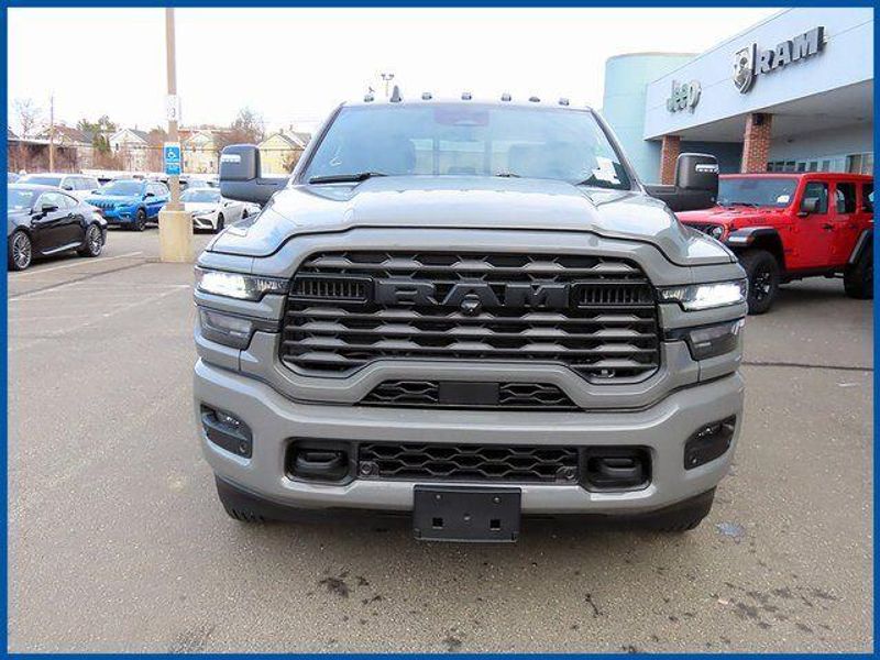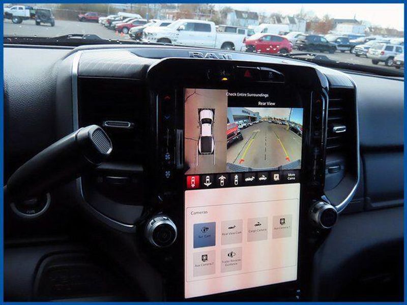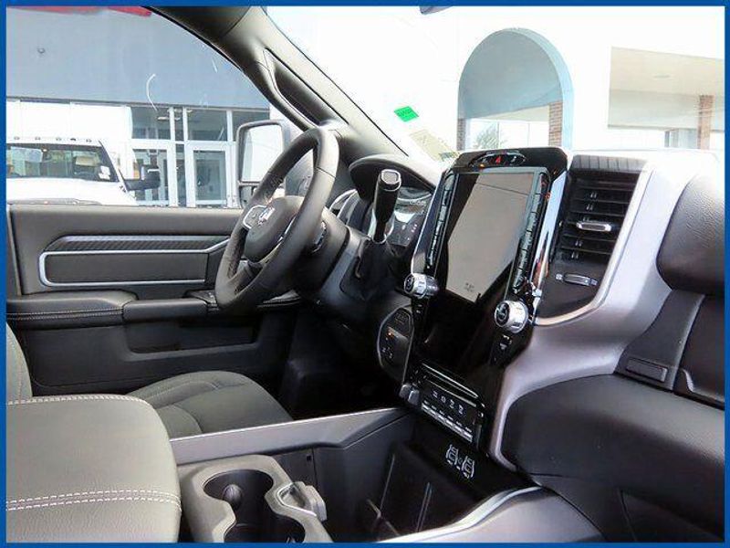 6.7L I6, Ceramic Gray Clearcoat, Black Cloth, 115-Volt Auxiliary Front Power Outlet, 12'' Touchscreen Display, 2 Way Rear Headrest Seat, 2nd Row in Floor Storage Bins, 4 Way Front Headrests, 400W Inverter, 4G LTE Wi-Fi Hot Spot, 5th Wheel/Gooseneck Towing Prep Group, 9 Alpine Speakers with Subwoofer, Active Lane Management System, Adaptive Steering System, Air Conditioning ATC with Dual Zone Control, Alexa Built-in, Apple CarPlay, Auto High Beam Headlamp Control, Auto Power-Folding Mirrors, Auto-Dimming Rear-View Mirror, Big Horn Level 2 Plus Equipment Group, Black Exterior Mirrors, Black Exterior Truck Badging, Black Interior Accents, Black Wheel Center Hub, Blind Spot and Cross Path Detection, Body Color Grille Surround, Bucket Seats, Center Stop Lamp with Cargo View Camera, Cluster 7.0'' TFT Color Display, Connected Travel and Traffic Services, Connectivity - US/Canada, Dampened Tailgate, Disassociated Touchscreen Display, Drowsy Driver Detection, Dual Glove Boxes, Dual Wireless Charging Pad, Emergency Vehicle Alert System (EVAS), Exterior 115V AC Outlet, Exterior Mirrors Courtesy Lamps, Exterior Mirrors with Heating Element, Exterior Mirrors with Supplemental Signals, Foam Bottle Insert (door Trim Panel), Folding Flat Load Floor Storage, Footwell Courtesy Lamp, For Details Visit DriveUconnect.com, For More Info, Call 800-643-2112, Forward and Reverse Utility Lights, Front Seat Back Map Pockets, Full Length Upgraded Floor Console, Global Telematics Box Module, Gloss Black Nostrils/Molded in Color Black Grille, Glove Box Lamp, Google Android Auto, GPS Antenna Input, GPS Navigation, HD Radio, Heated Front Seats, Heated Steering Wheel, Integrated Voice Command with Bluetooth, LED Bed Lighting, LED Tail Lamps, Locking Lower Glove Box, Luxury Steering Wheel, Manual Adjust 4-Way Front Passenger Seat, Max Tow Package, Mirror Running Lights, MOPAR Deployable Bed Step, MOPAR Spray in Bedliner, Night Edition, Off-Road Information Pages, Painted Front Bumper, Painted Rear Bumper, Power 2-Way Driver Lumbar Adjust, Power Adjust 8-Way Driver Seat, Power Adjust Mirrors, Power Adjustable Pedals, Power Heated Fold Telescopic Mirrors, Power Telescoping Mirrors, Power-Adjustable Convex Aux Mirrors, Premium Cloth Bucket Seats, Quick Order Package 24Z Big Horn, Radio: Uconnect 5 Navigation with 12.0'' Display, Rain Sensitive Windshield Wipers, Rear 60/40 Folding Seat, Rear Dome with on/Off Switch Lamp, Rear Power Sliding Window, Red Tail Lamp Bezels, Remote Start System, Selectable Tire Fill Alert, SiriusXM Radio Service, SiriusXM with 360L, Steering Wheel Mounted Audio Controls, Sun Visors with Illuminated Vanity Mirrors, Surround View Camera System, Traffic Sign Recognition, Trailer Reverse Guidance, Trailer Tire Pressure Monitoring System, Trailer Tow Pages, Universal Garage Door Opener.