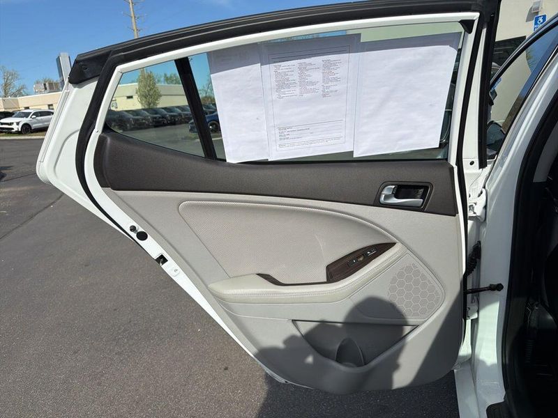For added peace of mind, the Optima EX is equipped with cutting-edge safety technologies, including Blind Spot Detection and Cross-Traffic Alert. These features work seamlessly to help you navigate busy roads with confidence, while the four-wheel disc brakes and electronic stability control provide exceptional control and handling.
