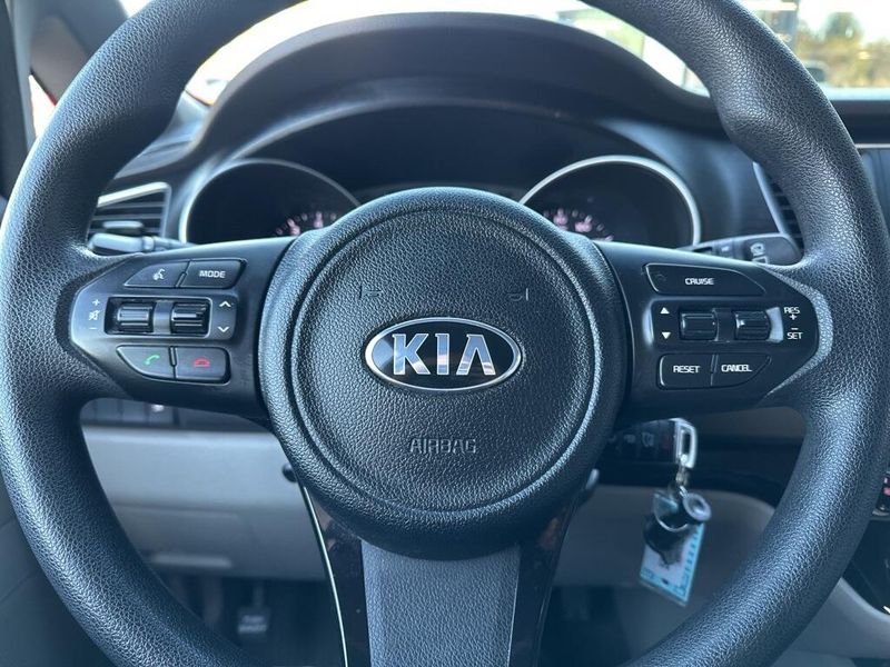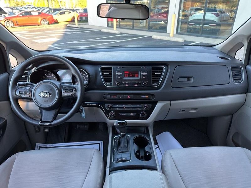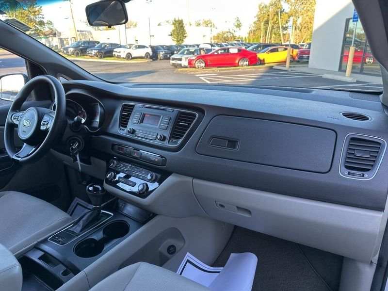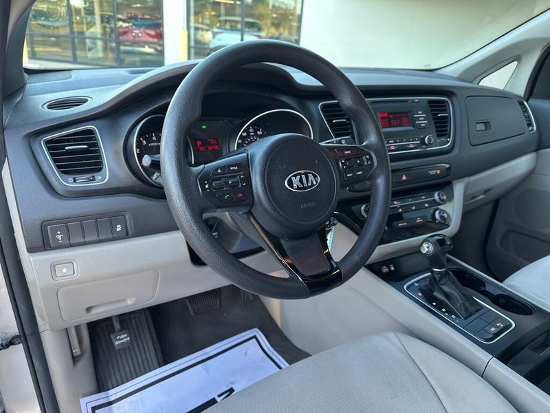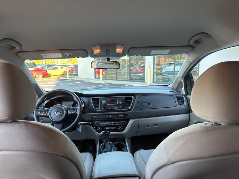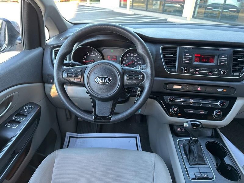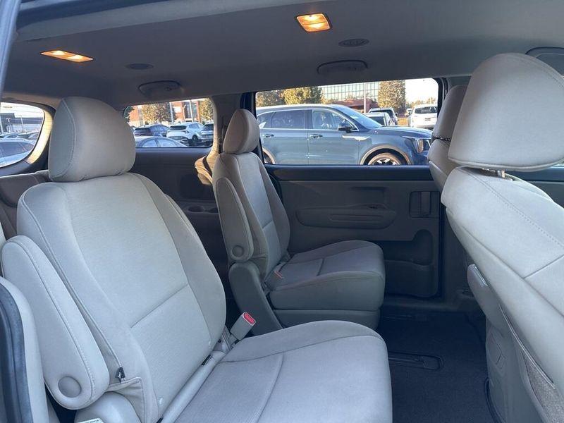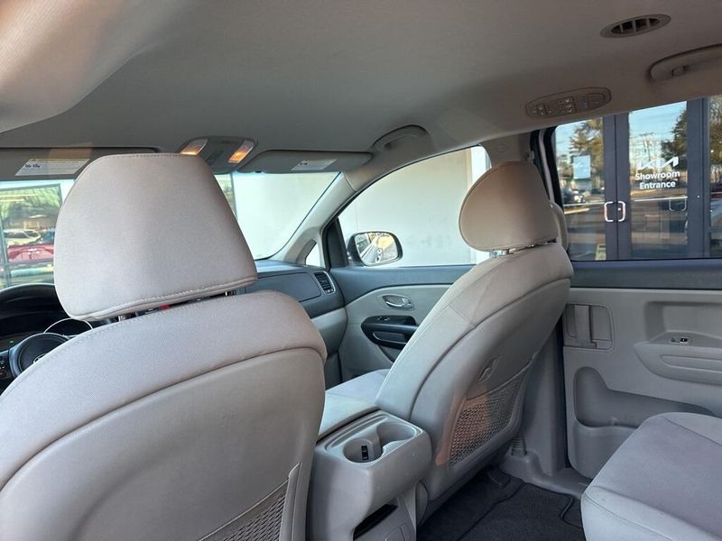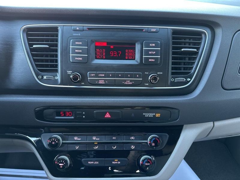 Inside, the 2015 Kia Sedona L offers a thoughtfully designed cabin built for convenience. YES Essentials anti-soil seat fabric helps resist stains, while power windows and locks, cruise control, and steering-wheel-mounted audio controls simplify life on the go. The AM/FM/CD/MP3 audio system with SiriusXM radio, USB and auxiliary inputs delivers easy connectivity and entertainment for every trip. Additional details such as remote keyless entry and multiple storage areas highlight the Sedonas attention to everyday usability.