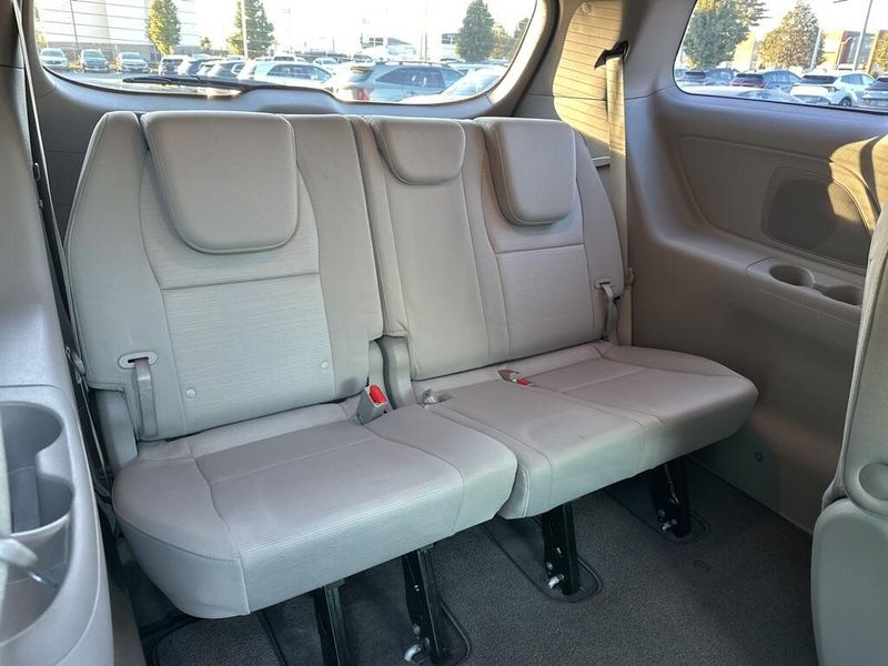 The exterior design is sleek yet practical, featuring body-colored power mirrors with integrated turn-signal indicators for improved visibility and style. The Bright Silver paint pairs perfectly with the alloy wheels, giving this minivan a polished look thats as family-friendly as it is modern. A rear back-up warning system provides added security in tight spaces, making city or suburban driving worry-free.