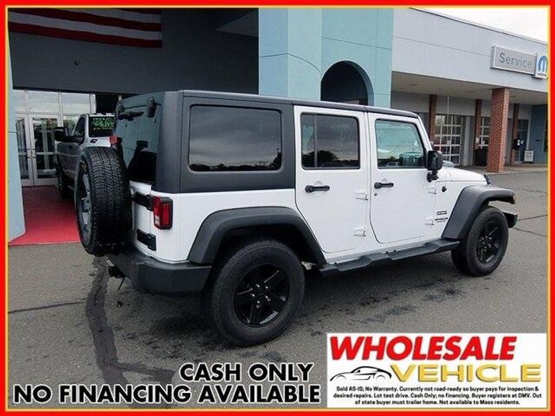Bright White Clearcoat 2017 Jeep Wrangler Unlimited Sport 4WD 5-Speed Automatic 3.6L V6 24V VVT **SOFT TOP NOT INCLUDED**, 3.6L V6 24V VVT, 4WD, Bright White Clearcoat, 17'' x 7.5'' Aluminum Wheels, Auto-Dimming Mirror w/Reading Lamp, Chrome/Leather Wrapped Shift Knob, Connectivity Group, Deep Tint Sunscreen Windows, Front 1-Touch Down Power Windows, Leather Wrapped Steering Wheel, Power Convenience Group, Power Heated Mirrors, Power Locks, Quick Order Package 24S, Remote Keyless Entry, Remote USB Port, Security Alarm, Tire Pressure Monitoring Display, Uconnect Voice Command w/Bluetooth, Vehicle Information Center.
