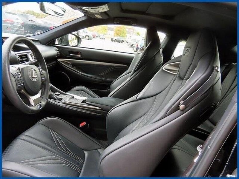 CARFAX One-Owner. Clean CARFAX. Black 2017 Lexus RC F RWD 8-Speed Automatic with Direct Shift 5.0L DOHC RC F, 5.0L DOHC, Black, 10 Speakers, Air Conditioning, AM/FM radio: SiriusXM, Automatic temperature control, CD player, Four wheel independent suspension, Front Bucket Seats, Front Center Armrest, Front dual zone A/C, Front Sport Bucket Seats, Power driver seat, Power steering, Power windows, Radio data system, Radio: AM/FM/In-Dash CD w/7'' VGA Display, Rear window defroster, Remote keyless entry, Speed-sensing steering, Steering wheel mounted audio controls, Traction control.