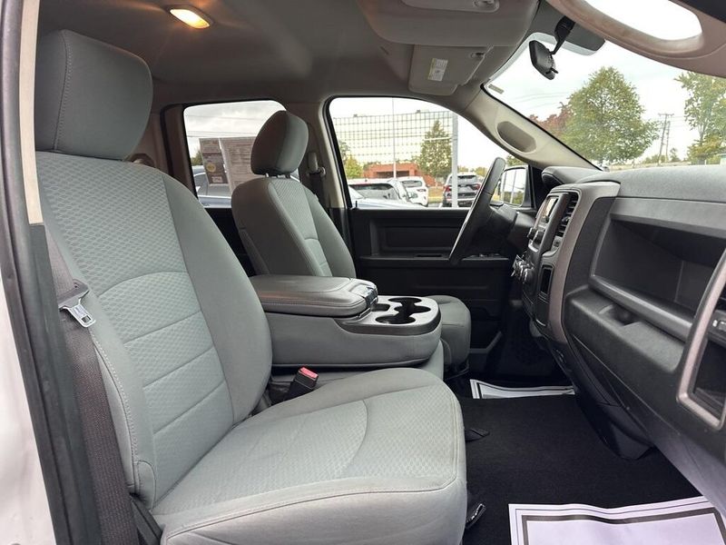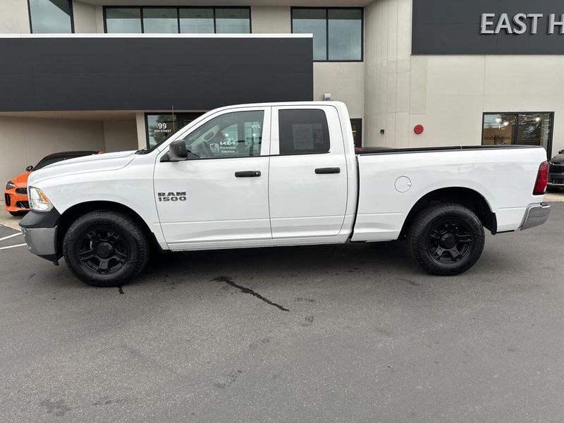 2017 Ram 1500 Tradesman Quad Cab 4x2 delivers rugged capability and straightforward dependability, making it an excellent choice for drivers who want a full-size pickup that balances performance, utility, and comfort. Finished in Bright White Clear Coat with a Black and Diesel Gray interior, this truck offers the classic bold Ram look with practical features designed for both work and everyday driving.