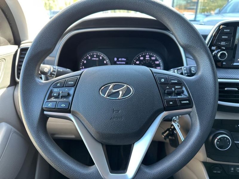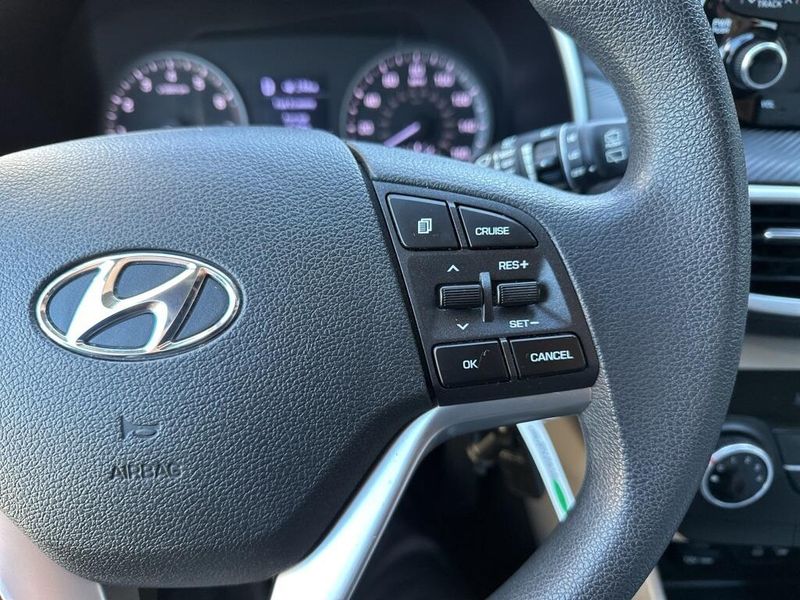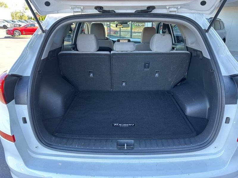 Under the hood, the 2019 Hyundai Tucson SE AWD is powered by a 2.0-liter Gasoline Direct Injection 4-cylinder engine producing 161 horsepower and paired with a smooth 6-speed automatic transmission with SHIFTRONIC. Drive Mode Select allows you to tailor performance to your preferences, while advanced safety technologies like Forward Collision-Avoidance Assist, Lane Keeping Assist, and Driver Attention Warning provide added protection. Additional safety features such as Electronic Stability Control, ABS with Electronic Brake-force Distribution, Hillstart Assist Control, and multiple airbags with rollover sensors reinforce Hyundais commitment to driver and passenger safety.