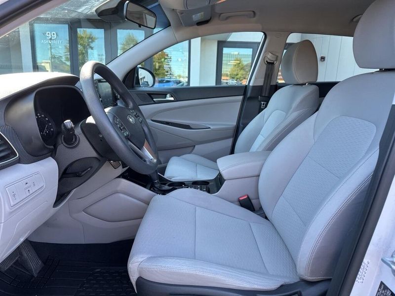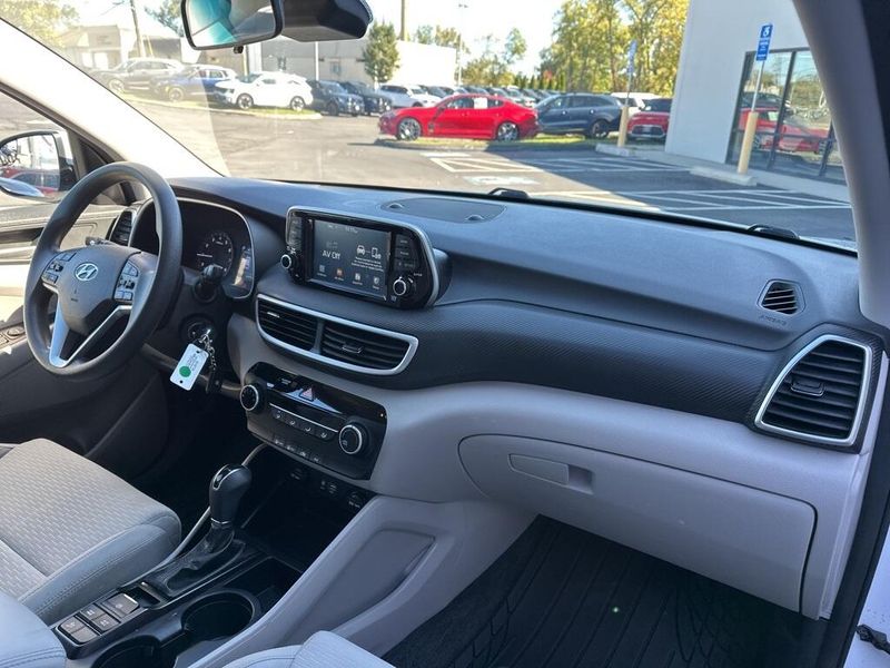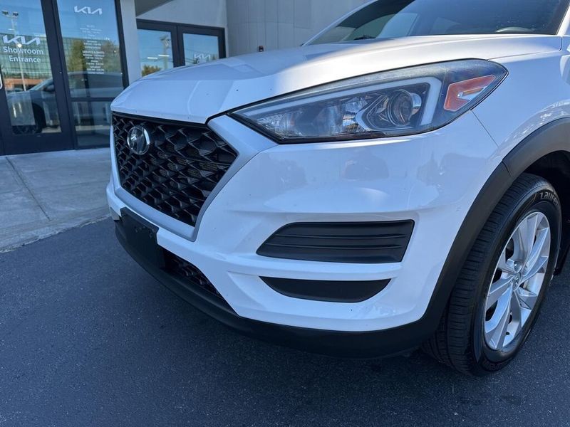2019 Hyundai Tucson SE AWD is a smart choice for drivers seeking a well-rounded SUV that blends style, capability, and advanced technology. With its bold Dazzling White exterior and comfortable Gray cloth interior, this Tucson delivers a modern look paired with practical design, making it an appealing option for families and commuters alike. Designed to handle varying road conditions with confidence, the HTRAC all-wheel-drive system ensures stability and traction, while its sleek profile and 17-inch alloy wheels add to its athletic stance.