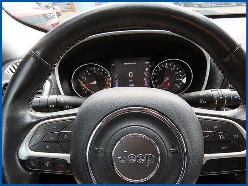 CARFAX One-Owner. Granite Crystal Metallic Clearcoat 2019 Jeep Compass Latitude 4WD 9-Speed Automatic 2.4L I4 Compass Latitude, 2.4L I4, 4WD, Granite Crystal Metallic Clearcoat, 4-Way Power Lumbar Adjust, 6 Speakers, All-Season Floor Mats, AM/FM radio: SiriusXM, Auto-Dimming Rear-View Mirror, Cluster 7.0'' Color Driver Info Display, Cold Weather Group, Heated Front Seats, Heated Steering Wheel, Popular Equipment Group, Power 8-Way Driver/Manual 6-Way Passenger Seats, Quick Order Package 27J (DISC), Radio: Uconnect 4 w/7'' Display, Reversible Carpet/Vinyl Cargo Mat, Windshield Wiper De-Icer.