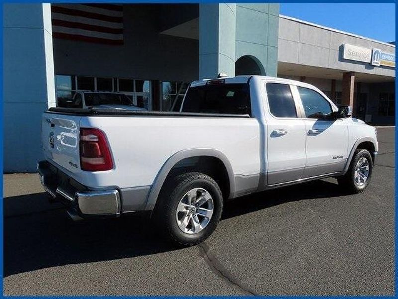 CARFAX One-Owner. Clean CARFAX. Ivory White Tri-Coat Pearlcoat 2019 Ram 1500 Laramie 4WD 8-Speed Automatic HEMI 5.7L V8 Multi Displacement VVT HEMI 5.7L V8 Multi Displacement VVT, 8-Speed Automatic, Ivory White Tri-Coat Pearlcoat, Lt Frost Beige/Mountain Leather, 1-Yr SiriusXM Guardian Trial, 10 Speakers, 5-Year SiriusXM Traffic Service, 5-Year SiriusXM Travel Link Service, 8.4'' Touchscreen Display, AM/FM radio: SiriusXM, Apple CarPlay, Audio memory, Auto-dimming door mirrors, Bumpers: chrome, Disassociated Touchscreen Display, For Details, Visit DriveUconnect.com, GPS Antenna Input, GPS Navigation, HD Radio, Integrated Center Stack Radio, No Satellite Coverage w/HI/AK/PR/VI/GU, Quick Order Package 25H Laramie, Radio data system, Radio: Uconnect 4 w/8.4'' Display, Radio: Uconnect 4C Nav w/8.4'' Display, SiriusXM Satellite Radio, SiriusXM Traffic Plus, SiriusXM Travel Link.