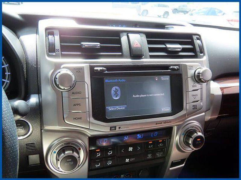Clean CARFAX. Midnight Black Metallic 2019 Toyota 4Runner Limited 4WD 5-Speed Automatic with Overdrive 4.0L V6 SMPI DOHC 4Runner Limited, 4.0L V6 SMPI DOHC, 4WD, Redwood Leather, Air Conditioning, All-Weather Floor Liners/Cargo Tray Package, Alloy wheels, AM/FM radio: SiriusXM, CD player, Front Bucket Seats, Front Center Armrest, Rear window defroster.