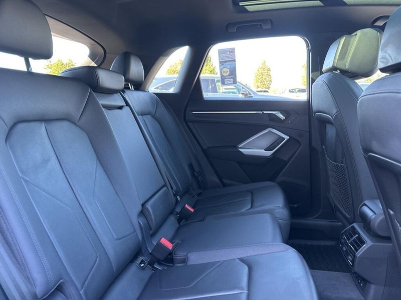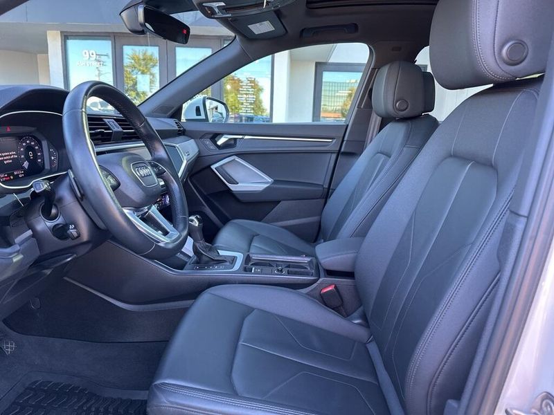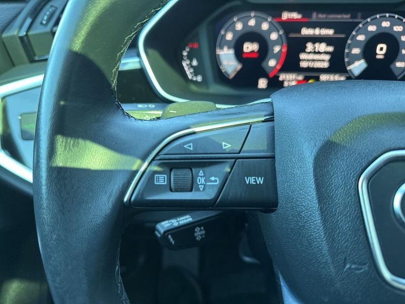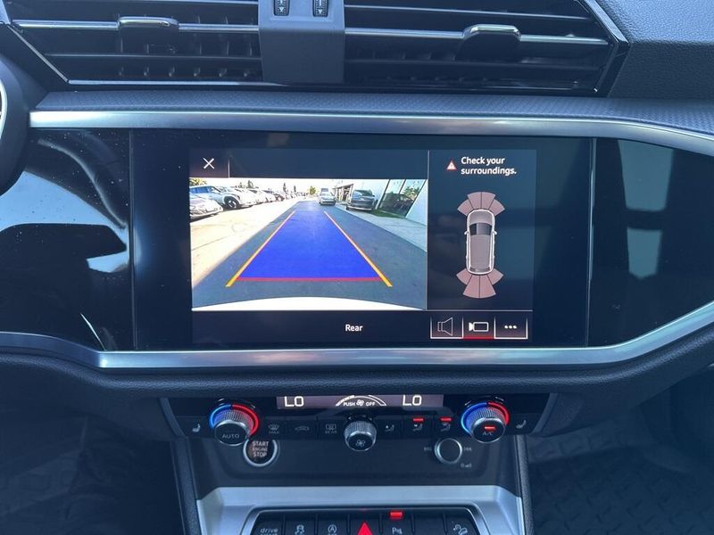 Inside, the cabin showcases Audis unmistakable balance of luxury and functionality. Leather seating surfaces, heated 8-way power front seats with 4-way lumbar, and a three-zone automatic climate control system provide exceptional comfort. A digital instrument cluster (10.25-inch) and MMI touch response display (8.8-inch) place essential controls at your fingertips. The Audi smartphone interface supports both Apple CarPlay and Android Auto, while the Audi sound system fills the cabin with immersive clarity.