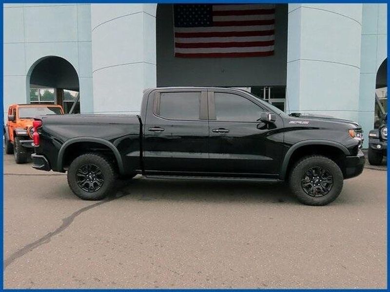 Black 2022 Chevrolet Silverado 1500 ZR2 4WD 10-Speed Automatic EcoTec3 6.2L V8 EcoTec3 6.2L V8, 10-Speed Automatic, 4WD, Jet Black/Graystone Leather, 10-Way Power Driver Seat w/Lumbar, 10-Way Power Passenger Seat Adjuster w/Lumbar, 12.3'' Multicolor Reconfigurable Digital Display, 120-Volt Bed Mounted Power Outlet, 120-Volt Instrument Panel Power Outlet, 15'' Diagonal Multicolor Head-Up Display, 170 Amp Alternator, 2 USB Data Ports, 2nd Row Heated Outboard Seats, Adaptive Cruise Control, All-Weather Floor Liner (LPO), Auto-Dimming Inside Rear-View Mirror, Auto-Locking Rear Differential, Bed View Camera, Bluetooth For Phone, Chevrolet Connected Access Capable, Chevytec Spray-On Black Bedliner, Color-Keyed Carpeting Floor Covering, Compass, Deep-Tinted Glass, Driver Memory, Dual Exhaust, Dual Rear USB Ports (Charge Only), Electric Rear-Window Defogger, Electrical Steering Column Lock, Electronic Cruise Control, EZ Lift Power Lock & Release Tailgate, Floor Mounted Center Console, Front LED Fog Lamps, Front Rainsensing Wipers, HD Surround Vision, Heated Driver & Front Outboard Passenger Seats, Heated Steering Wheel, Heavy-Duty Air Filter, High Gloss Black Mirror Caps, Hill Descent Control, Hitch Guidance, Hitch Guidance w/Hitch View, Integrated Trailer Brake Controller, Keyless Open & Start, Leather Wrapped Steering Wheel, LED Cargo Area Lighting, Manual Tilt/Telescoping Steering Column, OnStar & Chevrolet Connected Services Capable, Outside Heated Power-Adjustable Mirrors, Performance Red Recovery Hooks, Perimeter Lighting, Power Front Passenger Windows w/Express Up/Down, Power Front Windows w/Driver Express Up/Down, Power Rear Windows w/Express Down, Power Sliding Rear Window w/Rear Defogger, Power Tilt & Telescoping Steering Column, Preferred Equipment Group 3LT, Rear Camera Mirror, Rear Cross Traffic Alert-Braking, Rear Park Assist, Rear Pedestrian Detection, Rear Wheelhouse Liners, Remote Vehicle Starter System, Safety Alert Seat, SiriusXM w/360L, Standard Tailgate, Steering Wheel Audio Controls, Technology Package, Theft Deterrent System (Unauthorized Entry), Trailer Camera Provisions, Trailer Side Blind Zone Alert, Trailering App, Trailering Package, Universal Home Remote, Up-Level Rear Seat w/Storage Package, Ventilated Driver & Front Passenger Seats, Wi-Fi Hot Spot Capable, Wireless Charging, Wireless Phone Projection, ZR2 Suspension Package.