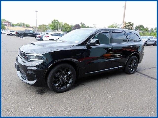 CARFAX One-Owner. Clean CARFAX. Certified. DB Black Crystal Clearcoat 2022 Dodge Durango R/T AWD 8-Speed Automatic HEMI 5.7L V8 Multi Displacement VVT HEMI 5.7L V8 Multi Displacement VVT, AWD, DB Black Crystal Clearcoat, 7 & 4 Pin Wiring Harness, 9 Speakers, Air Conditioning, AM/FM radio: SiriusXM w/360L, Audio memory, Automatic temperature control, Blacktop Package, Class IV Receiver Hitch, Front dual zone A/C, Gloss Black Badges, Gloss Black Exterior Mirrors, Heavy-Duty Engine Cooling, Navigation system: TomTom, Quick Order Package 22S R/T, Radio data system, Radio: Uconnect 5 Nav w/10.1'' Display, Rear air conditioning, Rear Load Leveling Suspension, Rear window defroster, Satin Black Dodge Tail Lamp Badge, Trailer Brake Control, Trailer Tow Group IV.