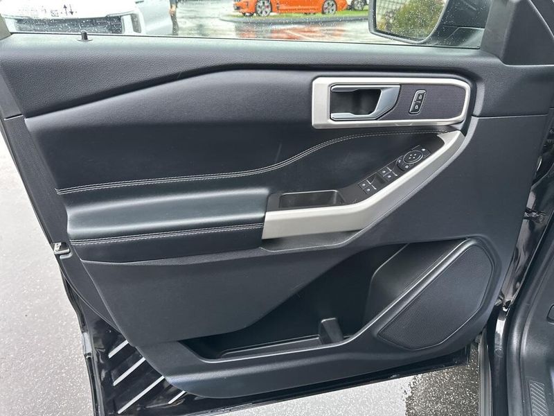 Outside, the Explorer makes a bold impression. LED headlamps, LED taillamps, and LED signature lighting highlight its confident stance. Functional details such as body-color door handles, heated power mirrors with approach lamps, privacy glass, roof-rack side rails, and a power liftgate enhance daily usability. The rear spoiler, variable-interval wipers, and Easy Fuel capless filler blend form and function seamlessly.