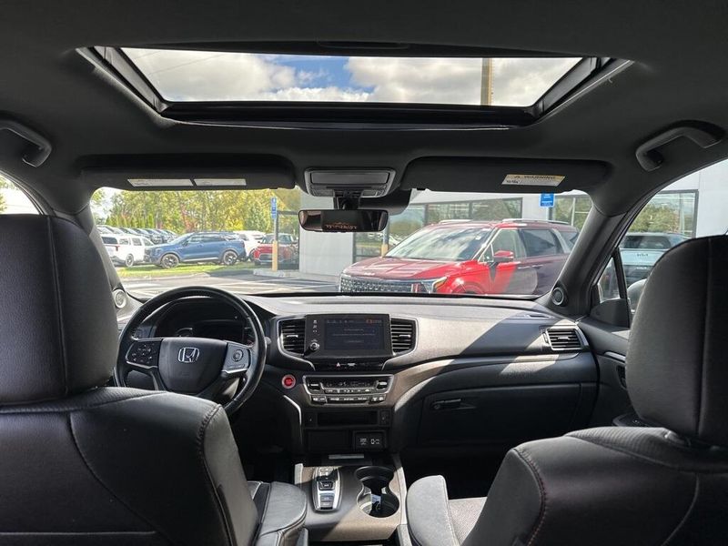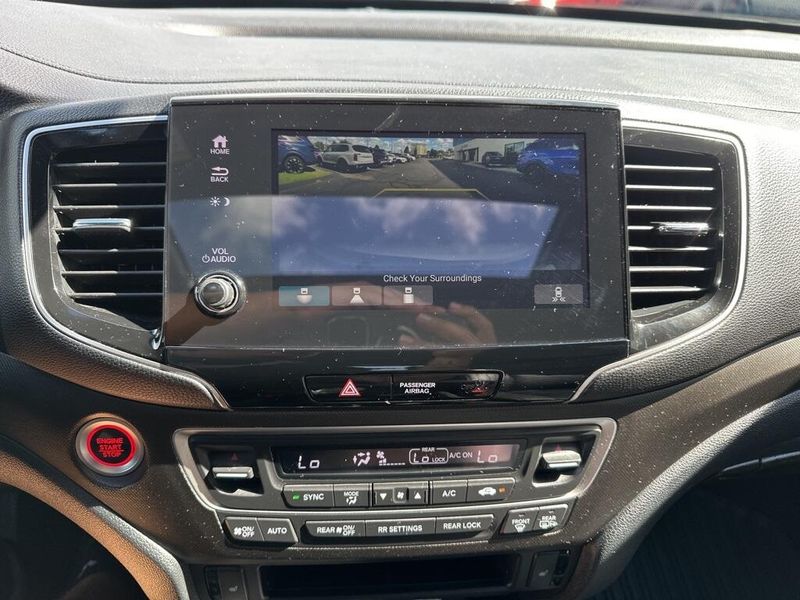 The TrailSport edition also emphasizes connectivity and entertainment, featuring an 8-inch high-resolution touchscreen with customizable settings, Honda Satellite-Linked Navigation, Bluetooth streaming, Apple CarPlay, Android Auto, SiriusXM, and HD Radio. A 215-watt audio system with seven speakers and subwoofer, plus CabinControl remote compatibility and wireless phone charging, keeps the entire cabin engaged.