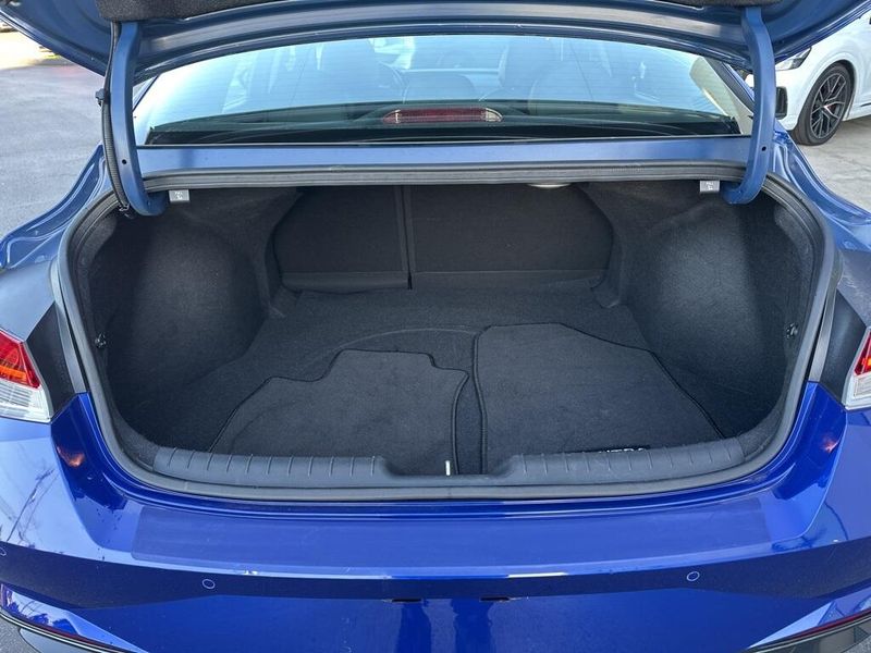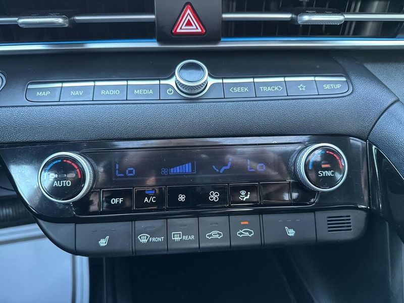 Inside, the cabin of the 2022 Elantra Limited is designed around driver comfort and intuitive technology. The 10.25-inch touchscreen navigation system integrates seamlessly with Apple CarPlay and Android Auto, while a matching 10.25-inch digital instrument cluster provides real-time driving information with clarity and style. The Bose premium audio system with eight speakers and subwoofer transforms the interior into a concert-like sound space, while leather-trimmed, heated front seats, dual-zone automatic climate control, and a power drivers seat with lumbar support ensure every journey is both comfortable and refined. Additional premium touches such as an auto-dimming rearview mirror, wireless charging pad, proximity key with push-button start, and hands-free smart trunk release elevate the driving experience even further.